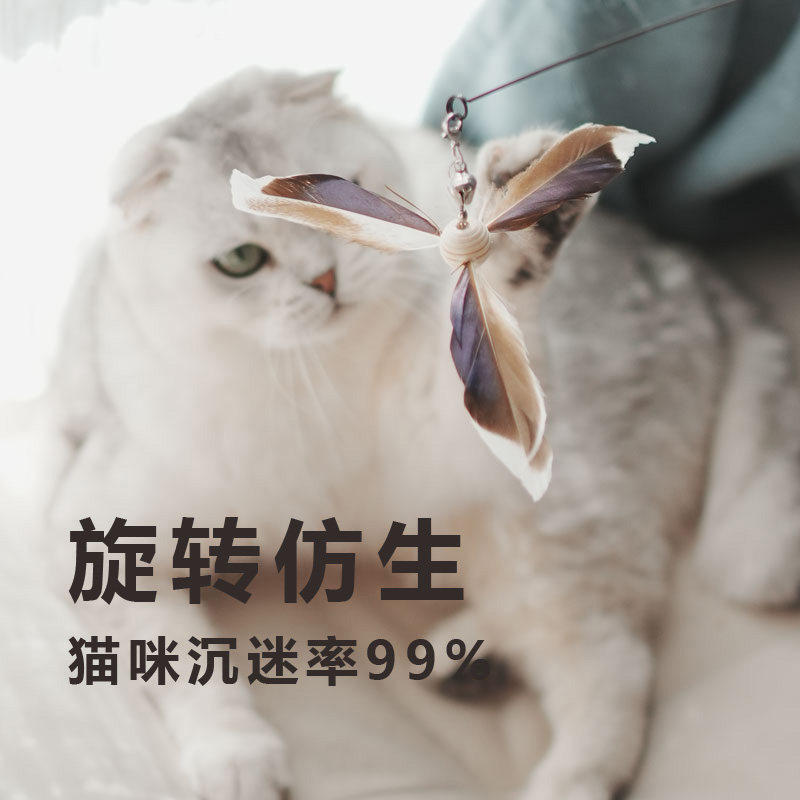 逗猫棒逗猫神器长杆天然羽毛竹蜻蜓猫咪玩具可旋转替换头操控性