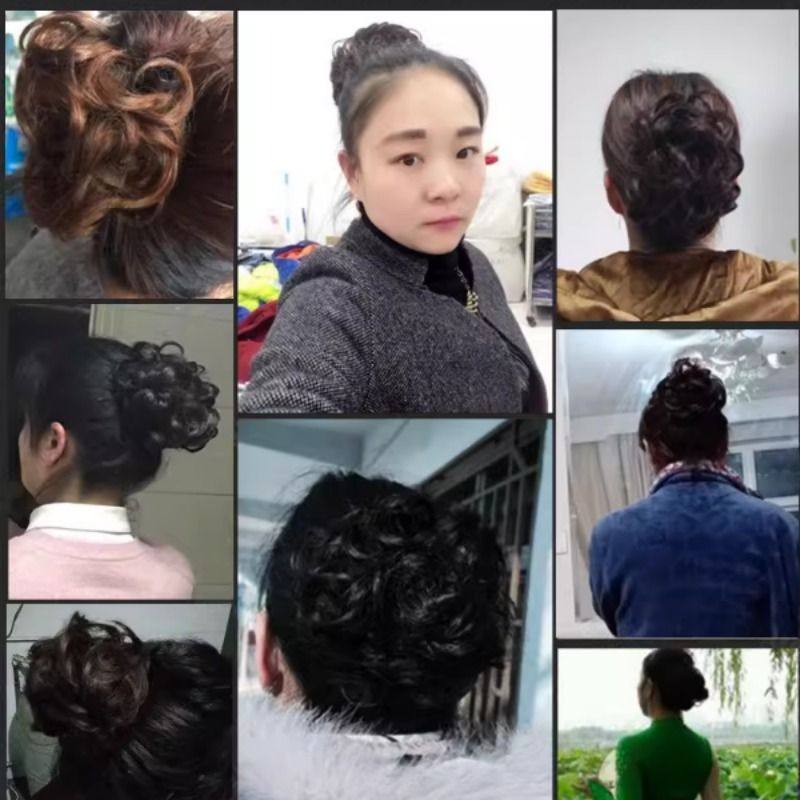 低扎丸子头假发鸡毛头抓夹盘发发包慵懒感造型头饰自然蓬松后脑勺