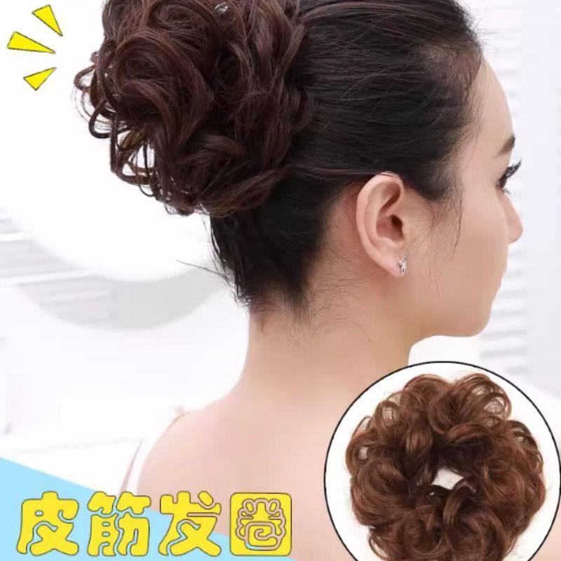 真发假发女蓬松假发圈头花发包半丸子头花苞头直发苞盘头花松紧带
