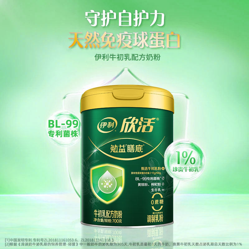 伊利牛初乳中老年奶粉成人儿童免疫球蛋白高钙无蔗糖700g配方罐装