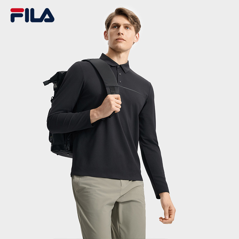 FILA 斐乐官方男子针织长袖POLO衫2025秋季新款时尚休闲通勤上衣