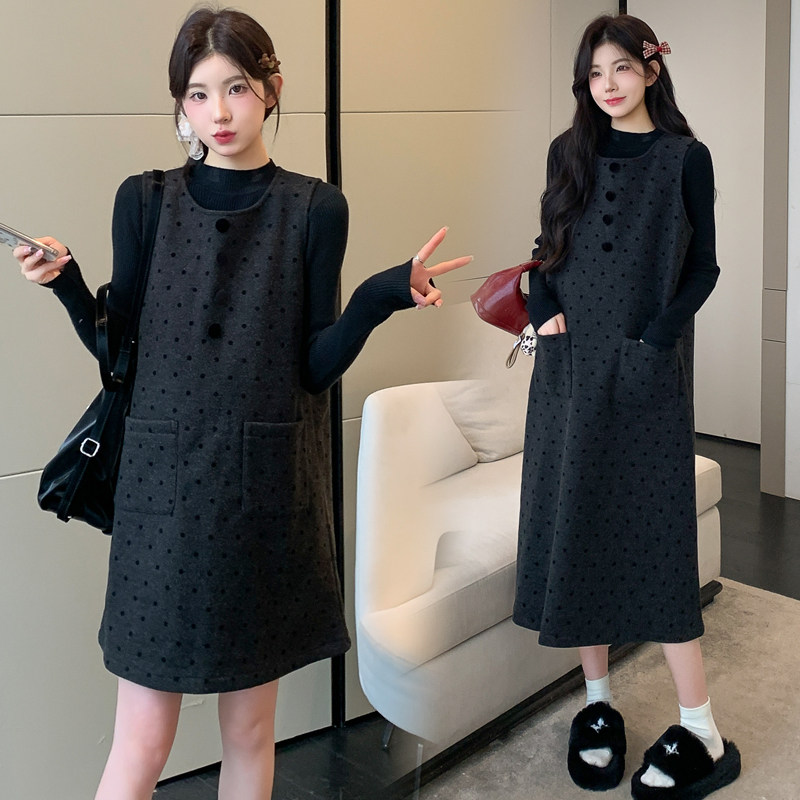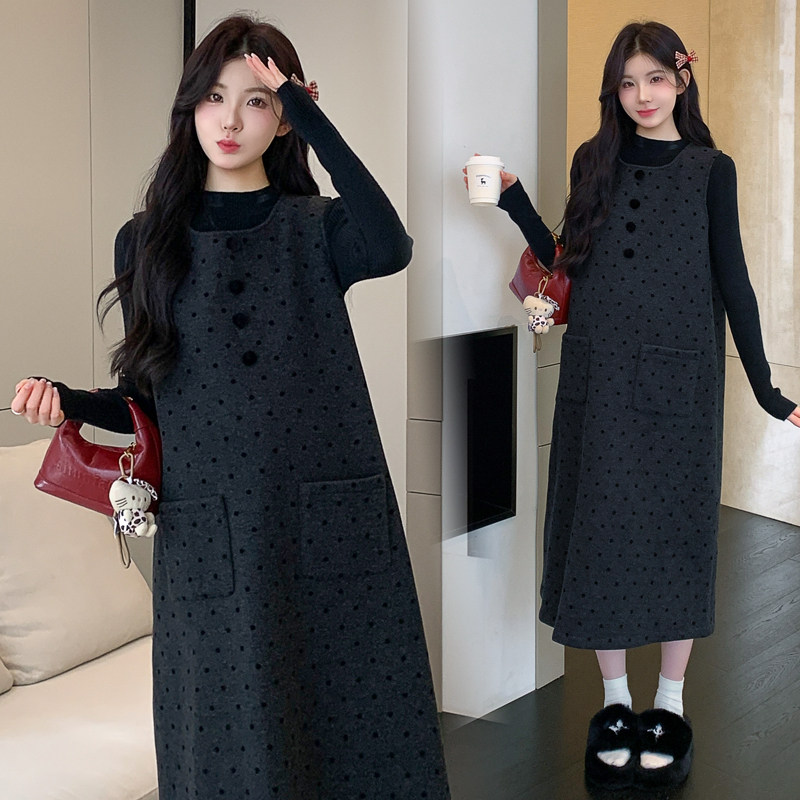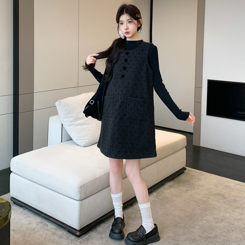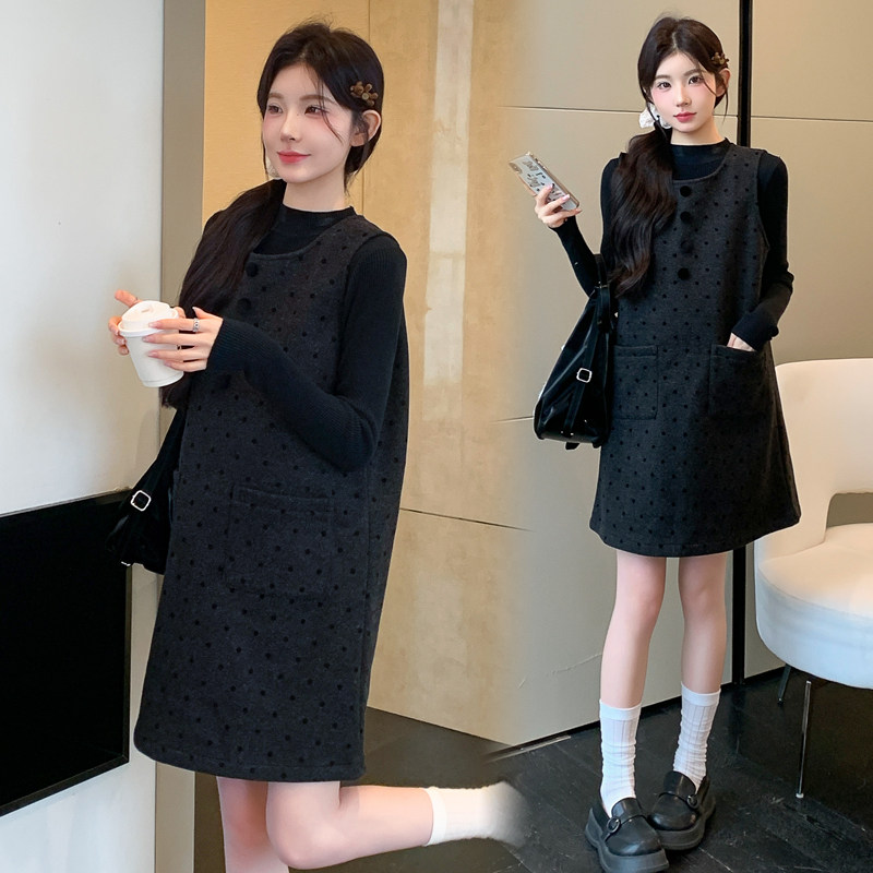 婧麒孕妇装秋冬连衣裙2025新款孕妈高级感穿搭套装毛呢背带裙