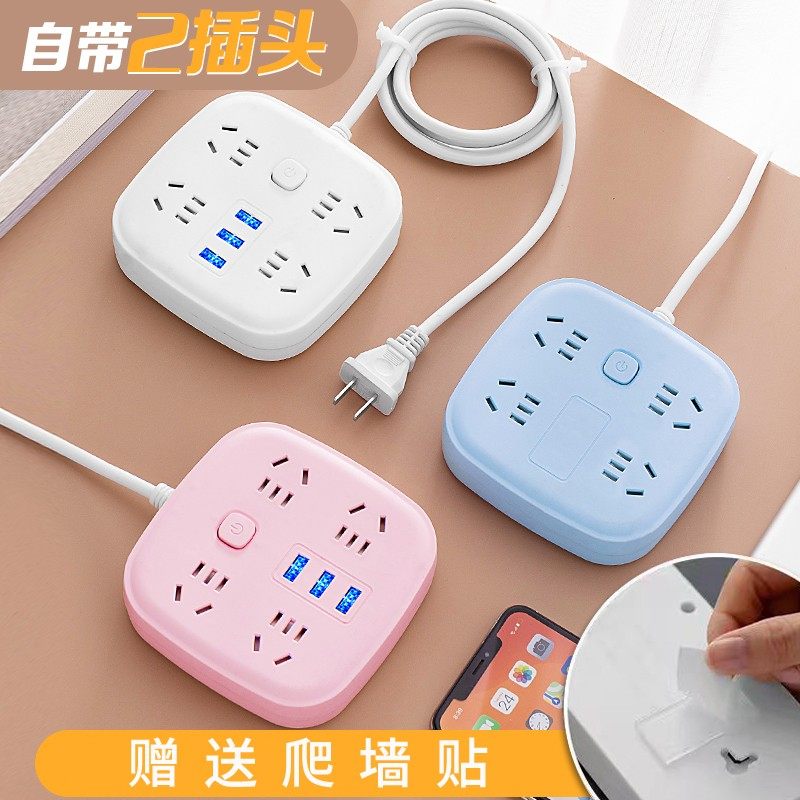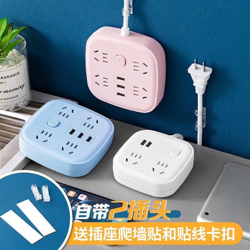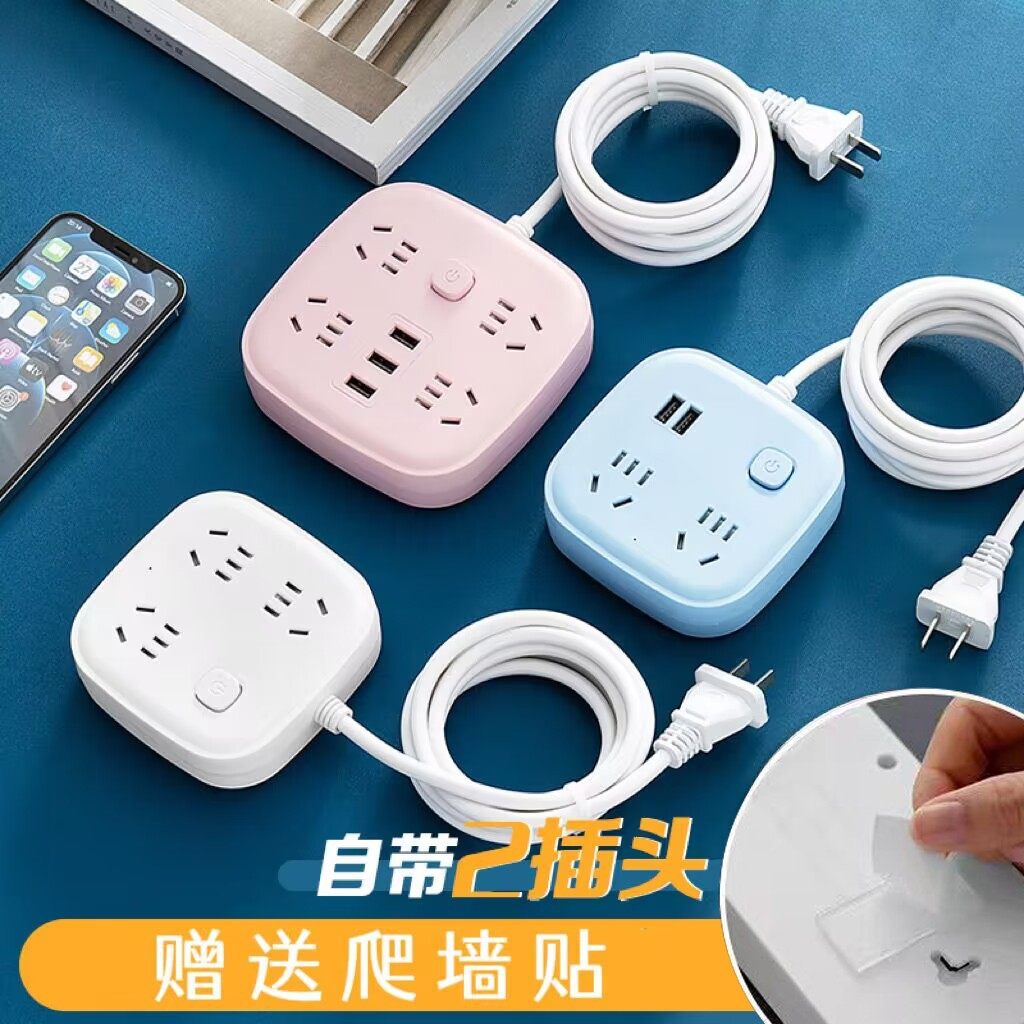 两脚插座二孔插线板2插头排插带线插板接线板多功能带usb