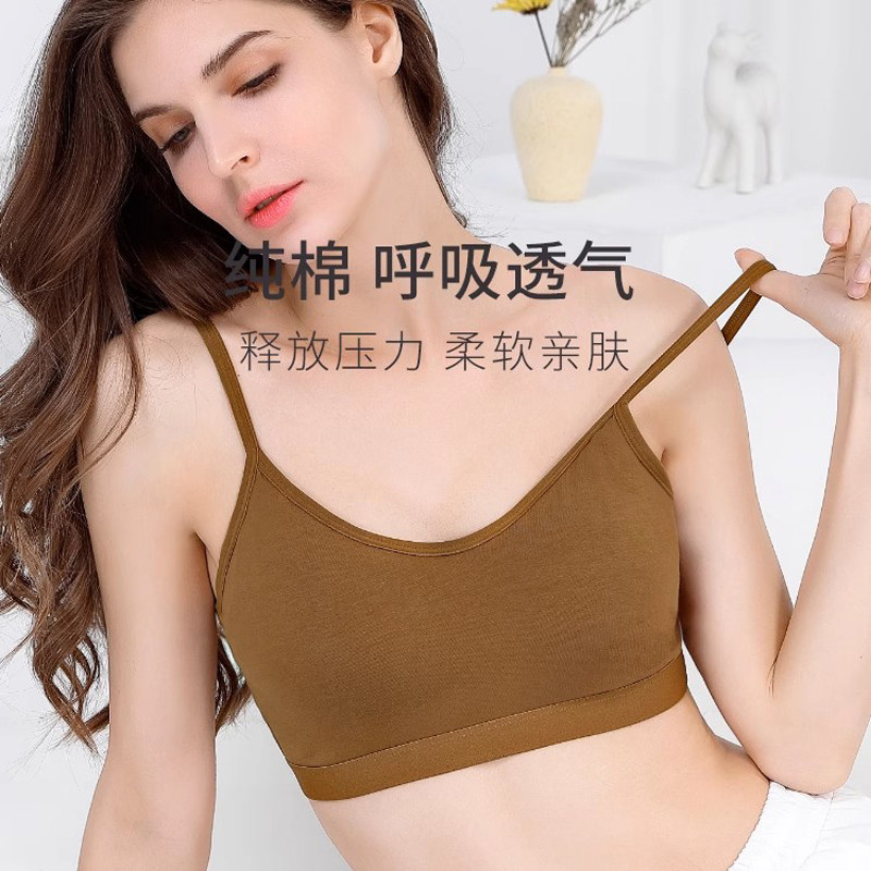 纯棉文胸一体式固定杯吊带裹胸聚拢防走光文胸美背学生穿少女抹胸