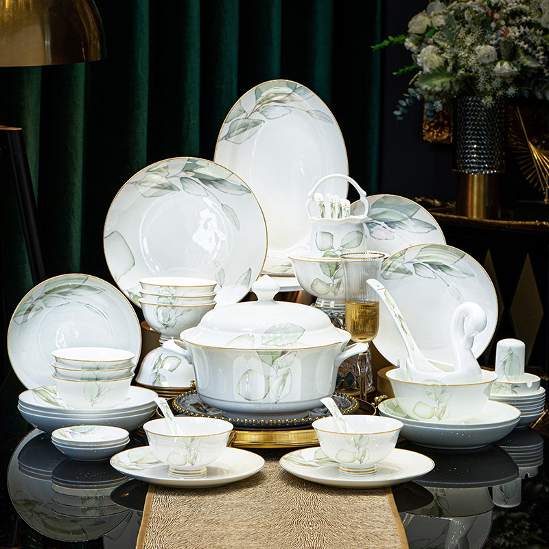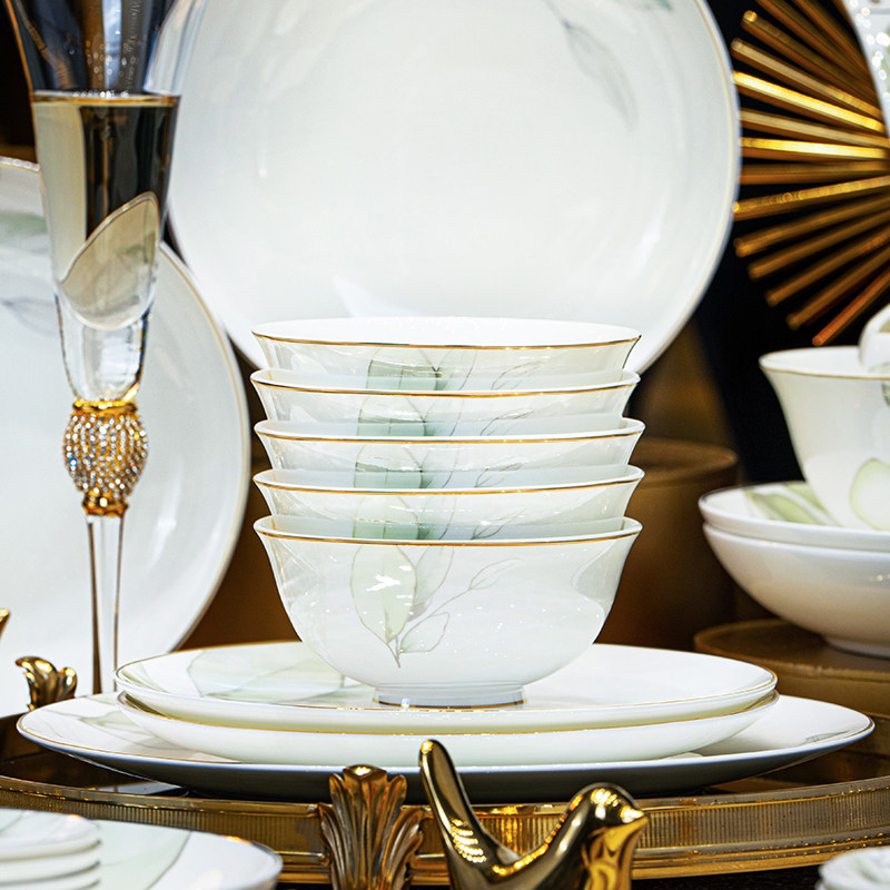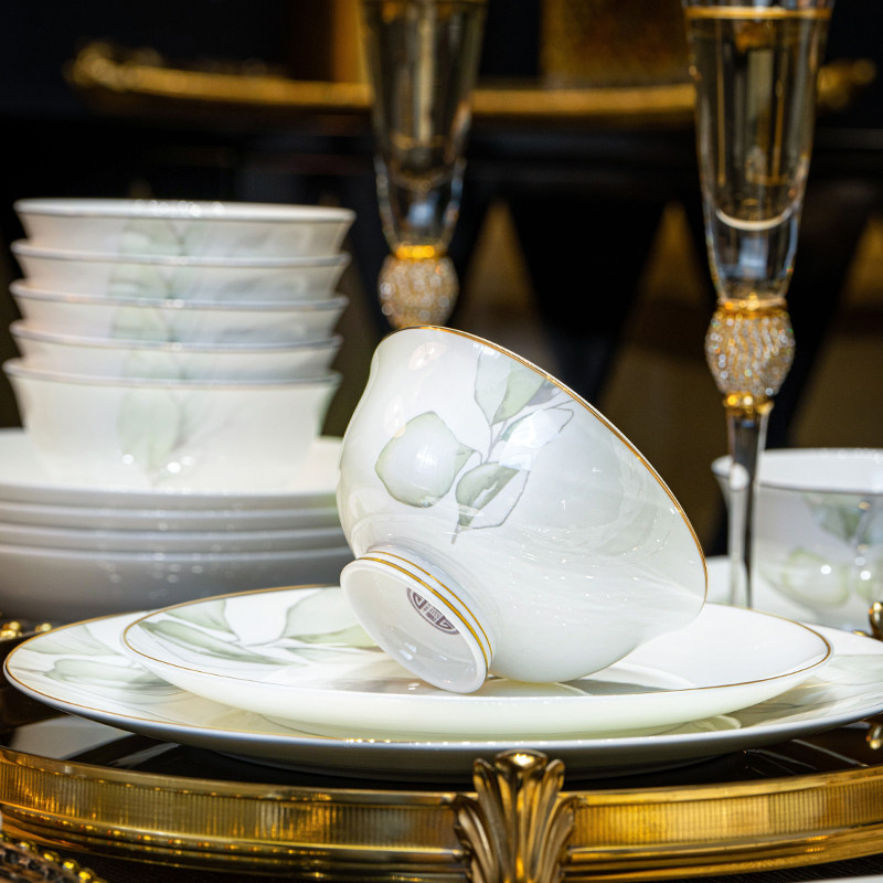 碗碟套装家用中式高档景德镇高温陶瓷轻奢餐具碗盘组合乔迁礼盒装