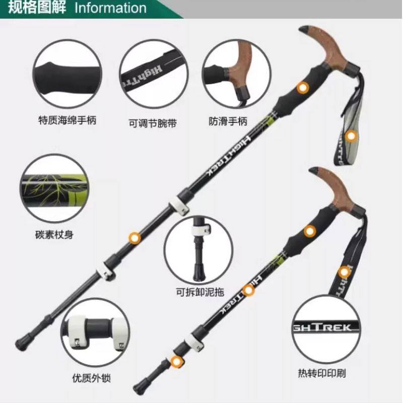 儿童成人超轻小弯柄碳素纤维登山杖外锁伸缩折叠老人户外行山手杖