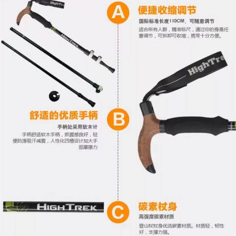户外登山杖手杖碳素超轻伸缩折叠滑雪防滑拐杖多功能爬山徒步装备