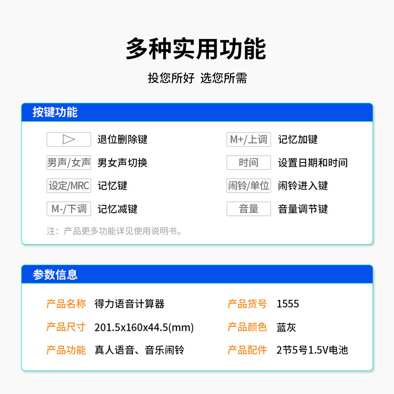 得力1555语音计算器大按键男女真人发音会计计算器翘头宽屏显示财务办公商用计算机抖音演奏弹奏计算器专用
