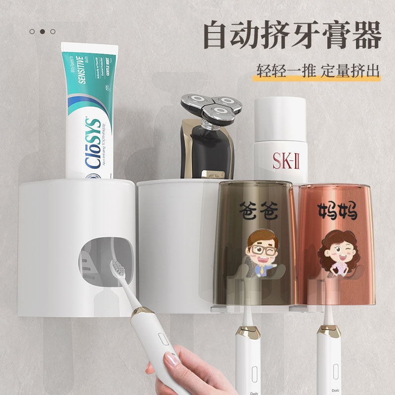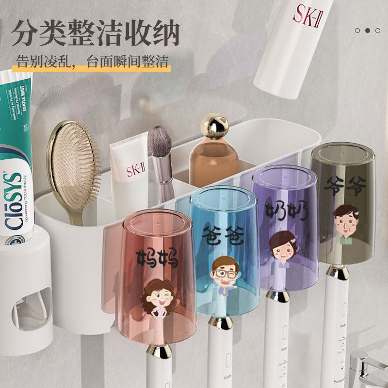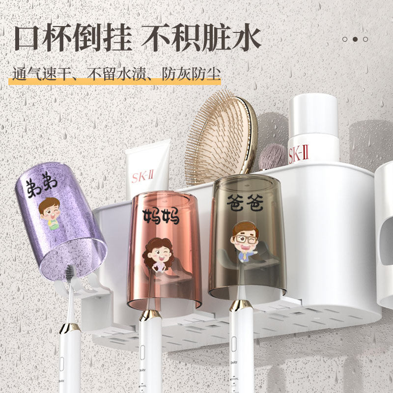 牙刷漱口杯置物架壁挂式免打孔刷牙杯卫生间家庭电动牙膏牙刷挂架