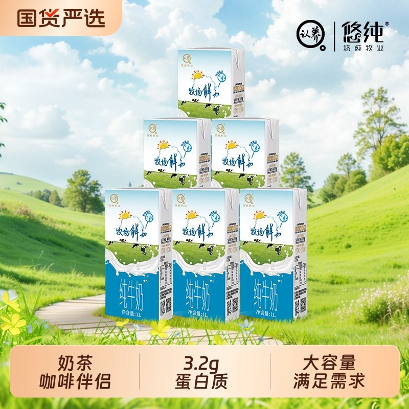 【大容量】认养牧场纯牛奶1L咖啡店奶茶店水饮店diy咖啡伴侣牛奶