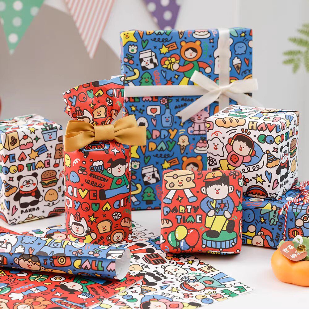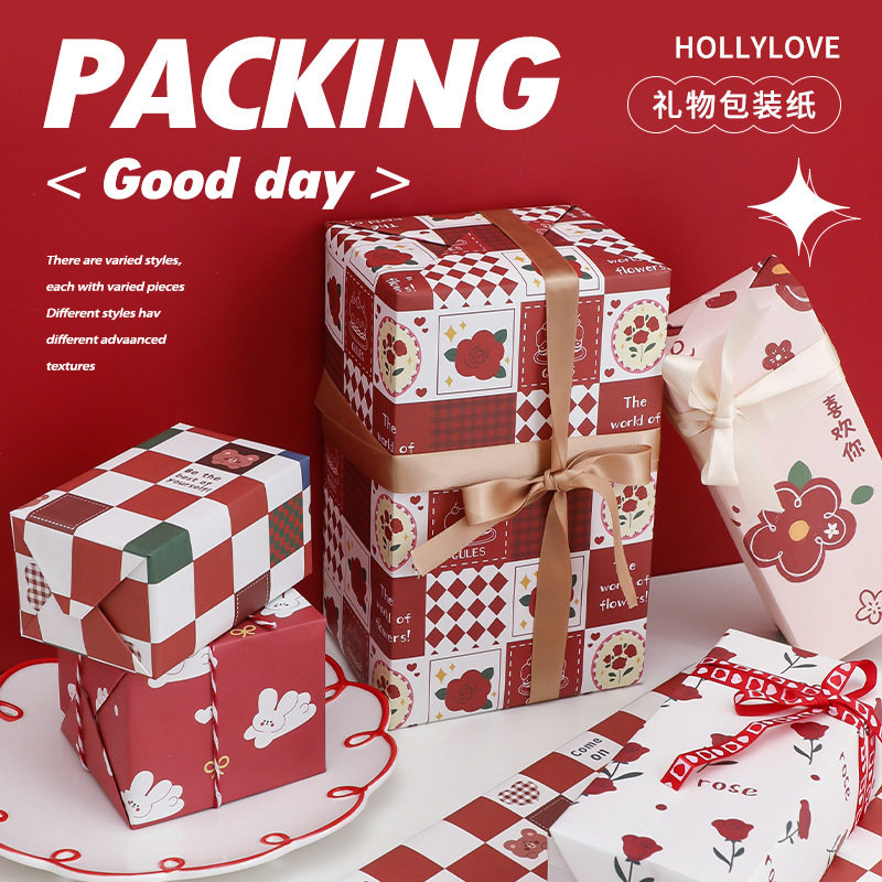 节日包装纸礼物盒520礼品纸生日龙年红色礼盒纸包装材料包书皮可爱卡通大尺寸高级书皮纸七夕情人节开学季礼