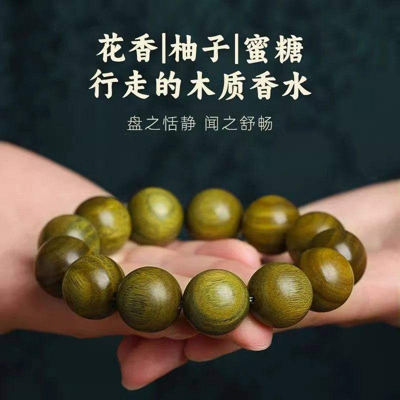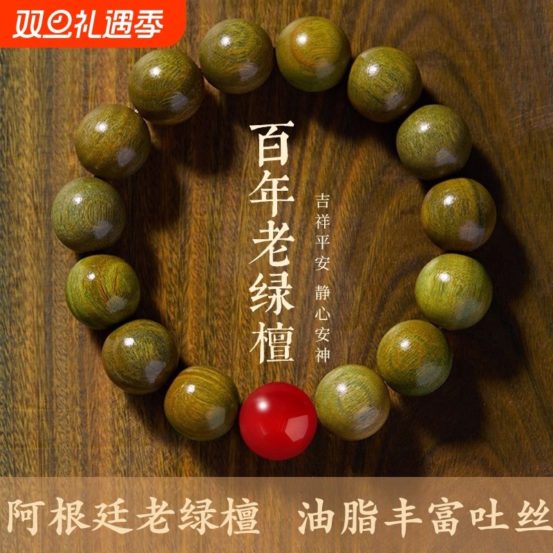 红玛瑙绿檀木手串阿根廷文玩檀香木质女士佛珠盘玩黑曜石手链百年