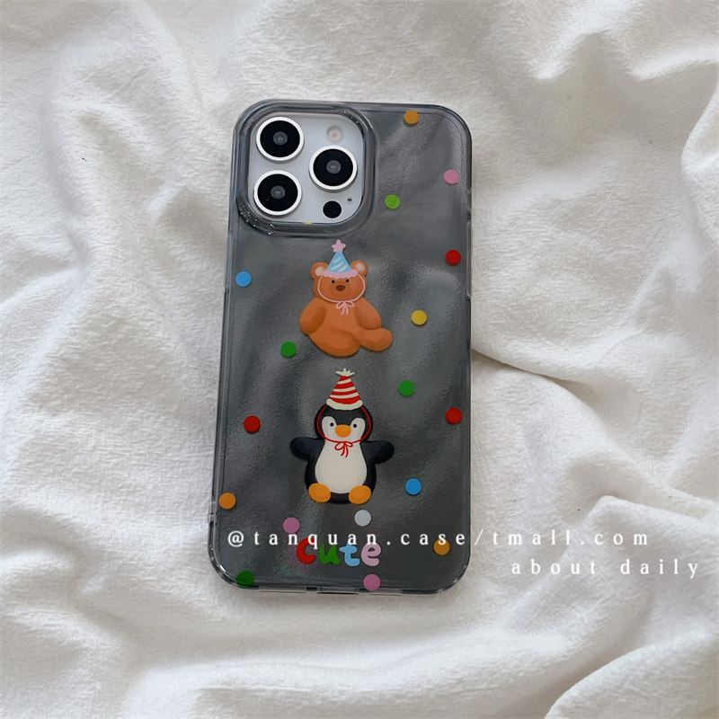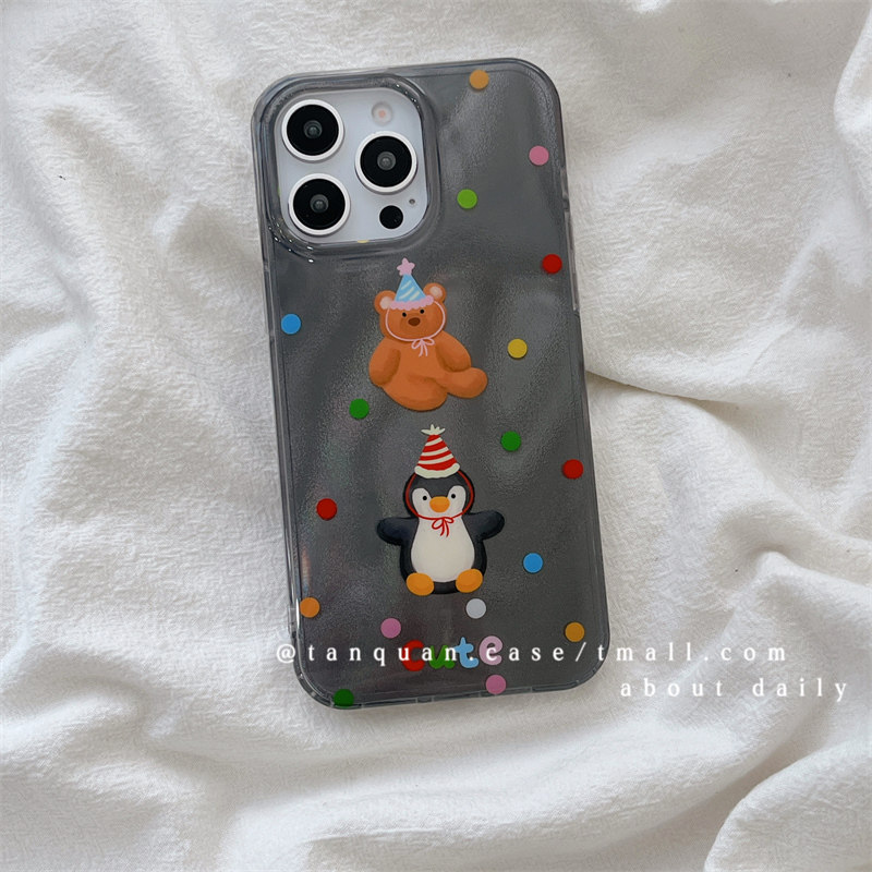 ins卡通波点小动物带链条适用iphone15pro手机壳16pro苹果14promax新款13女12日韩创意14趣味13pro全包12pro