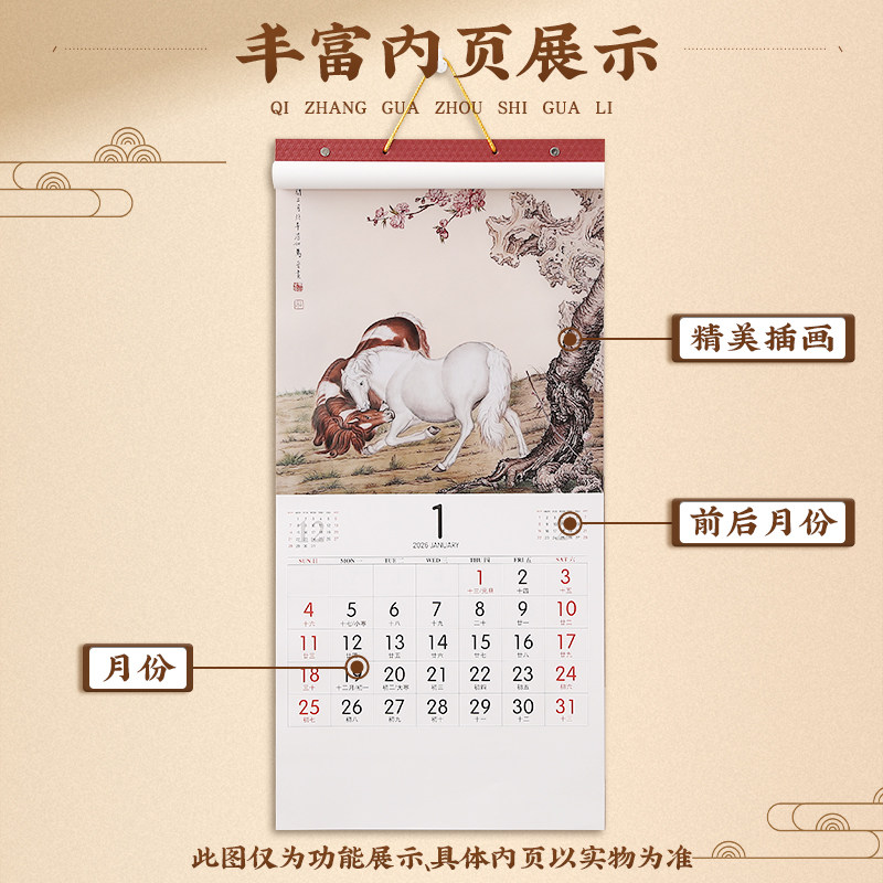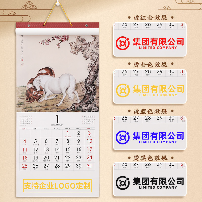 2026年新款月历十三张记事挂历定制传统中国风月历定做公司企业广告logo挂历个性创意家用挂墙马年日历高档