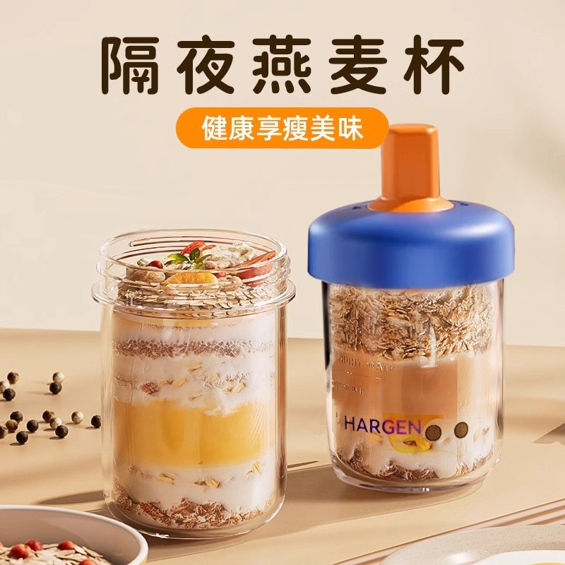 隔夜燕麦杯便携早餐酸奶杯带盖勺外带密封沙拉牛奶杯奶昔麦片杯子