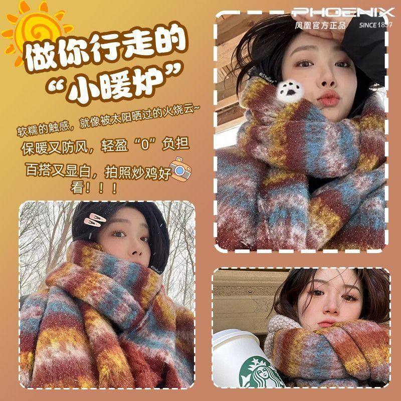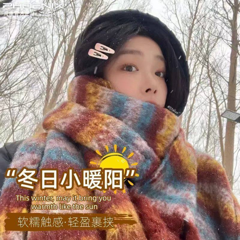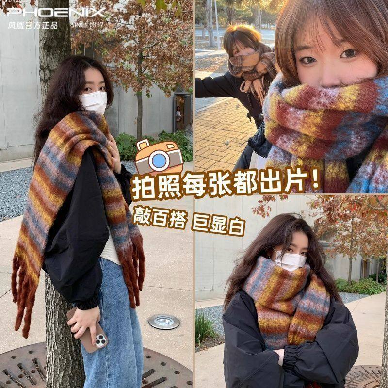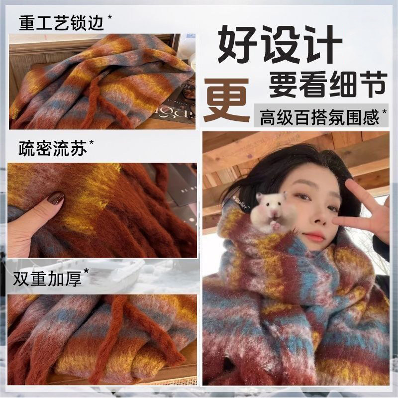 彩虹毛球马海毛围巾女冬季加厚保暖学生格子披肩围脖流苏氛围实用