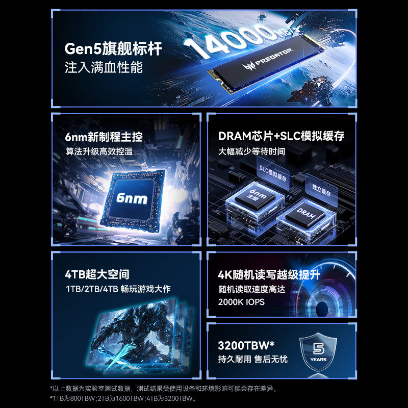 宏碁掠夺者GM9000神舆固态硬盘M.2 NVME PCIE-5.0台式机笔记本SSD