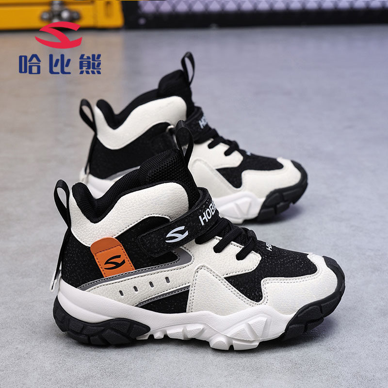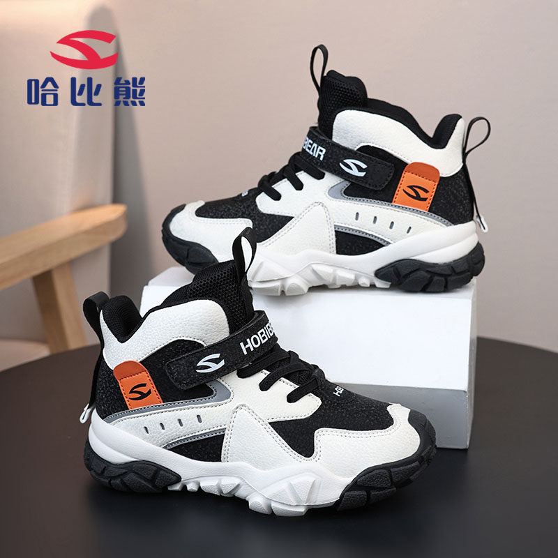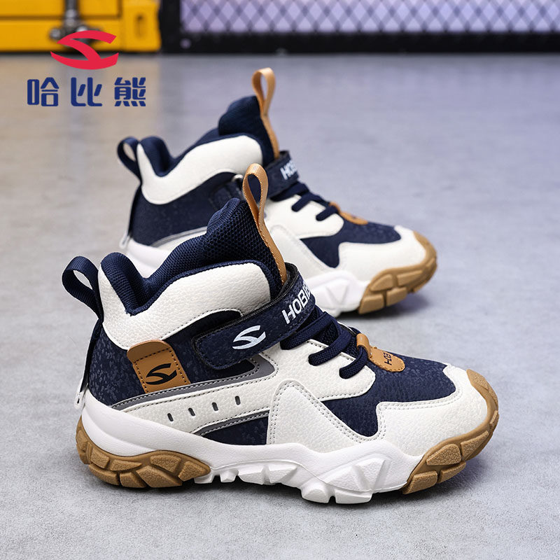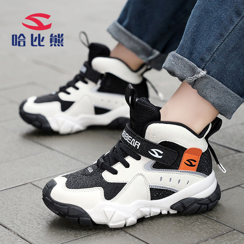 哈比熊童鞋儿童运动鞋男童2025秋冬新款皮面防水中大童二棉鞋高帮