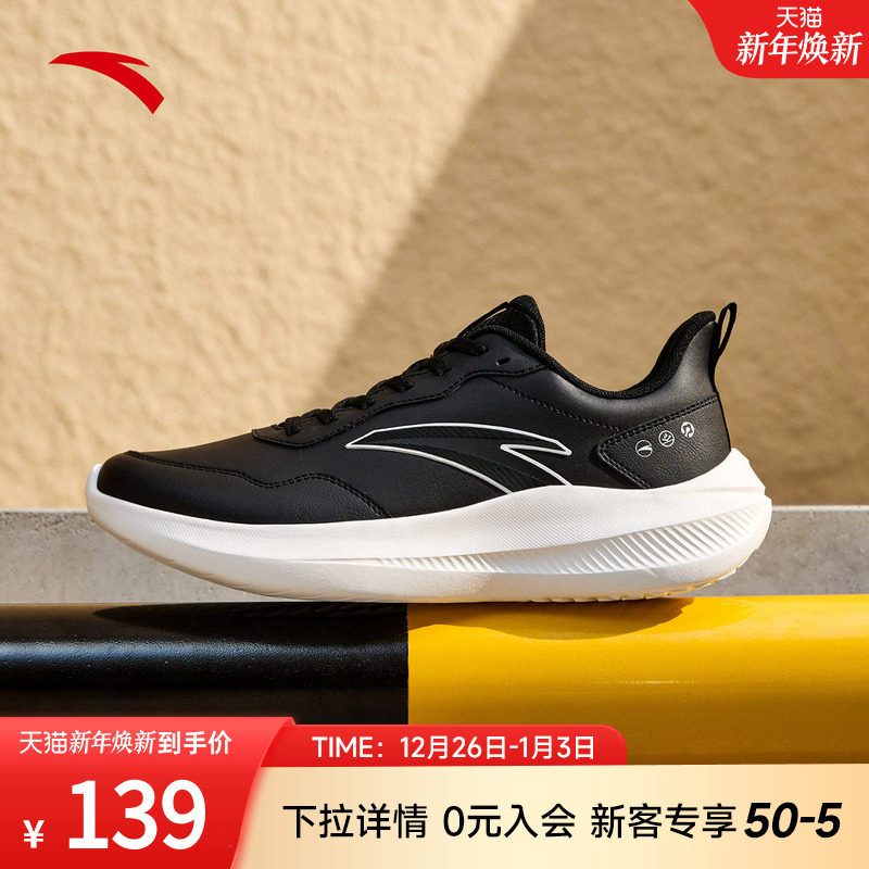 安踏男鞋运动鞋男款冬季新款官方旗舰正品黑色皮面男士跑步鞋子男