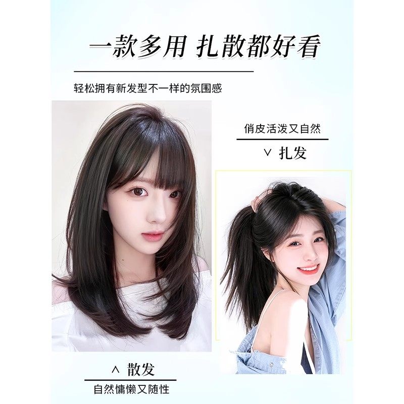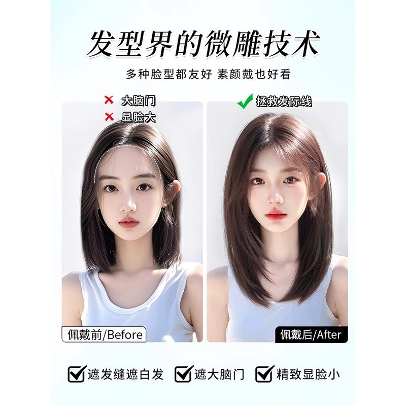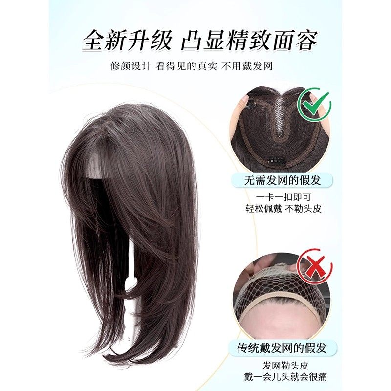 免发网假发女顶颅顶长发全头套锁骨发假发片真发发丝斜刘海长直