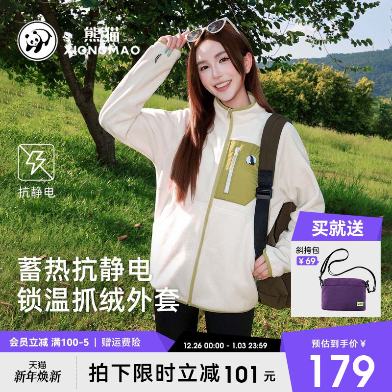 熊猫摇粒绒短外套女2025新款秋抓绒衣女内胆加绒厚抗静电保暖卫衣