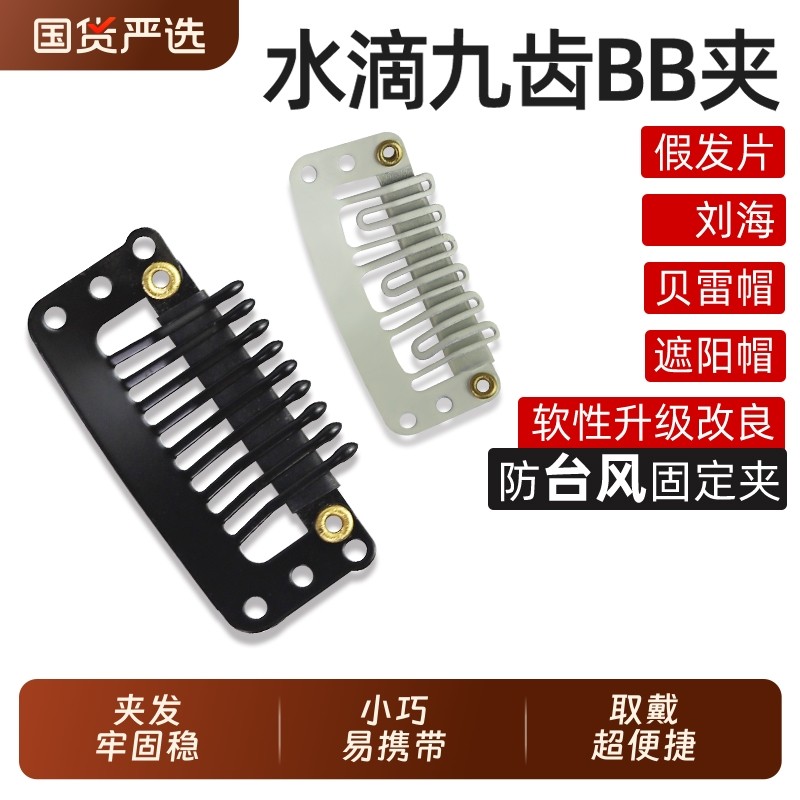 假发夹子发片固定夹贝雷帽夹BB夹9齿水滴夹固定假发块发片免缝款