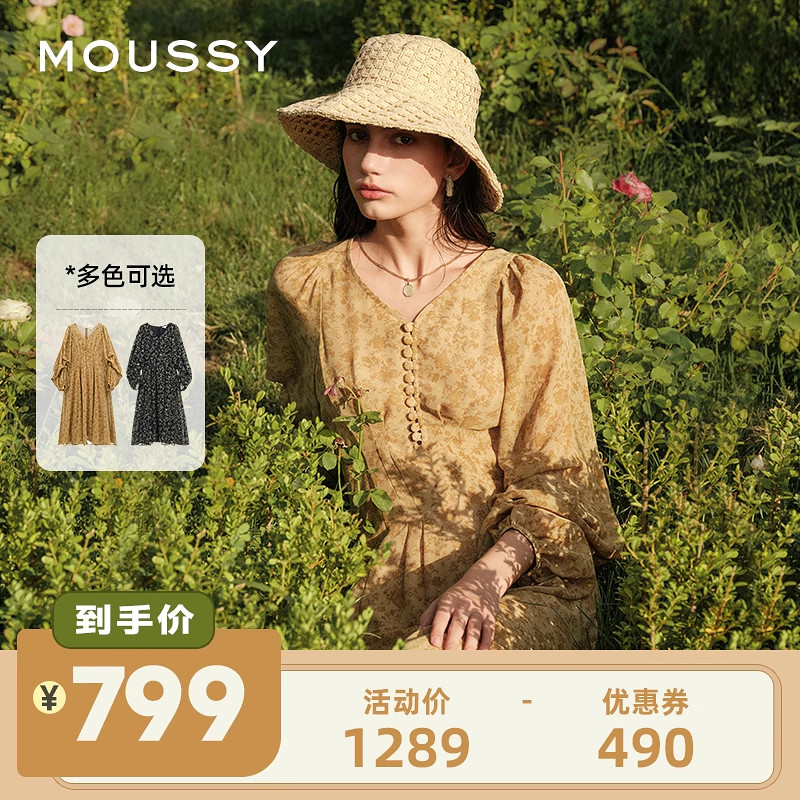 moussy 夏季新款南法度假风碎花气质浪漫连衣裙028ISX33-3711