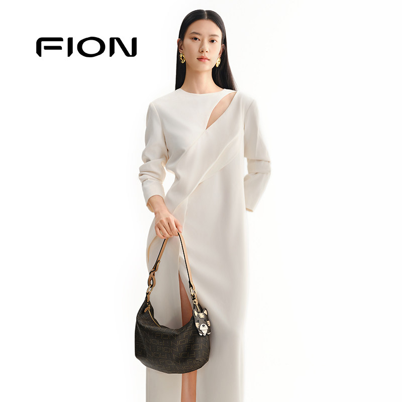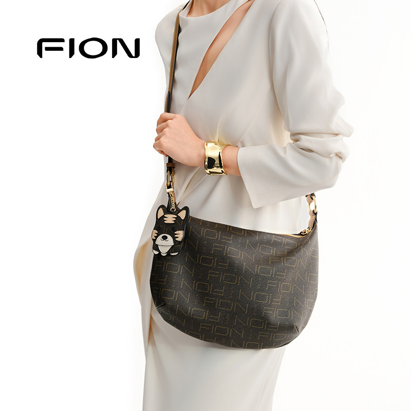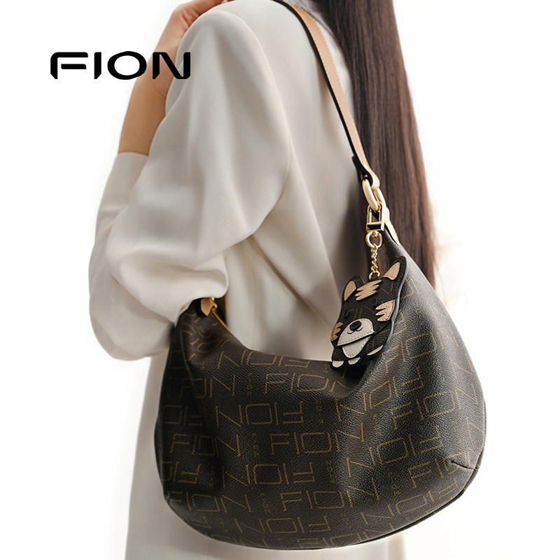 Fion/菲安妮老花法棍腋下包包女复古单肩包通勤高级气质手提小包