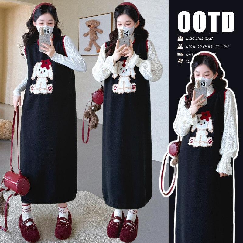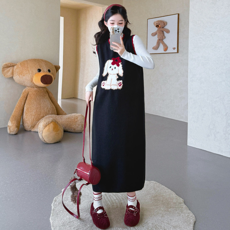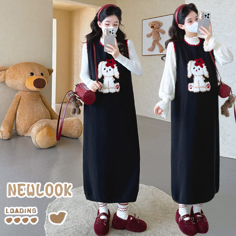 婧麒孕妇装连衣裙2025新款秋冬背心裙套装长袖卡通中长款马甲裙子