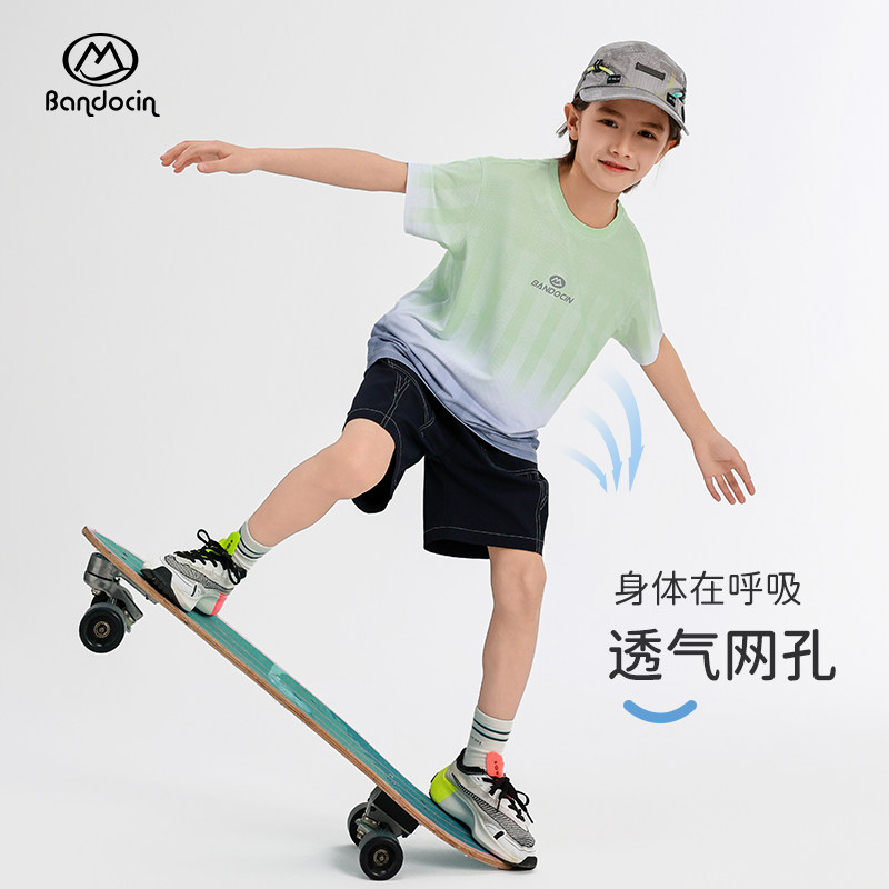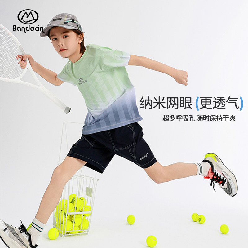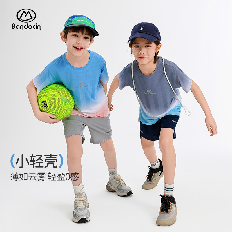 半度闲男童渐变运动短袖t恤速干衣洋气2025新款儿童夏装透气上衣T