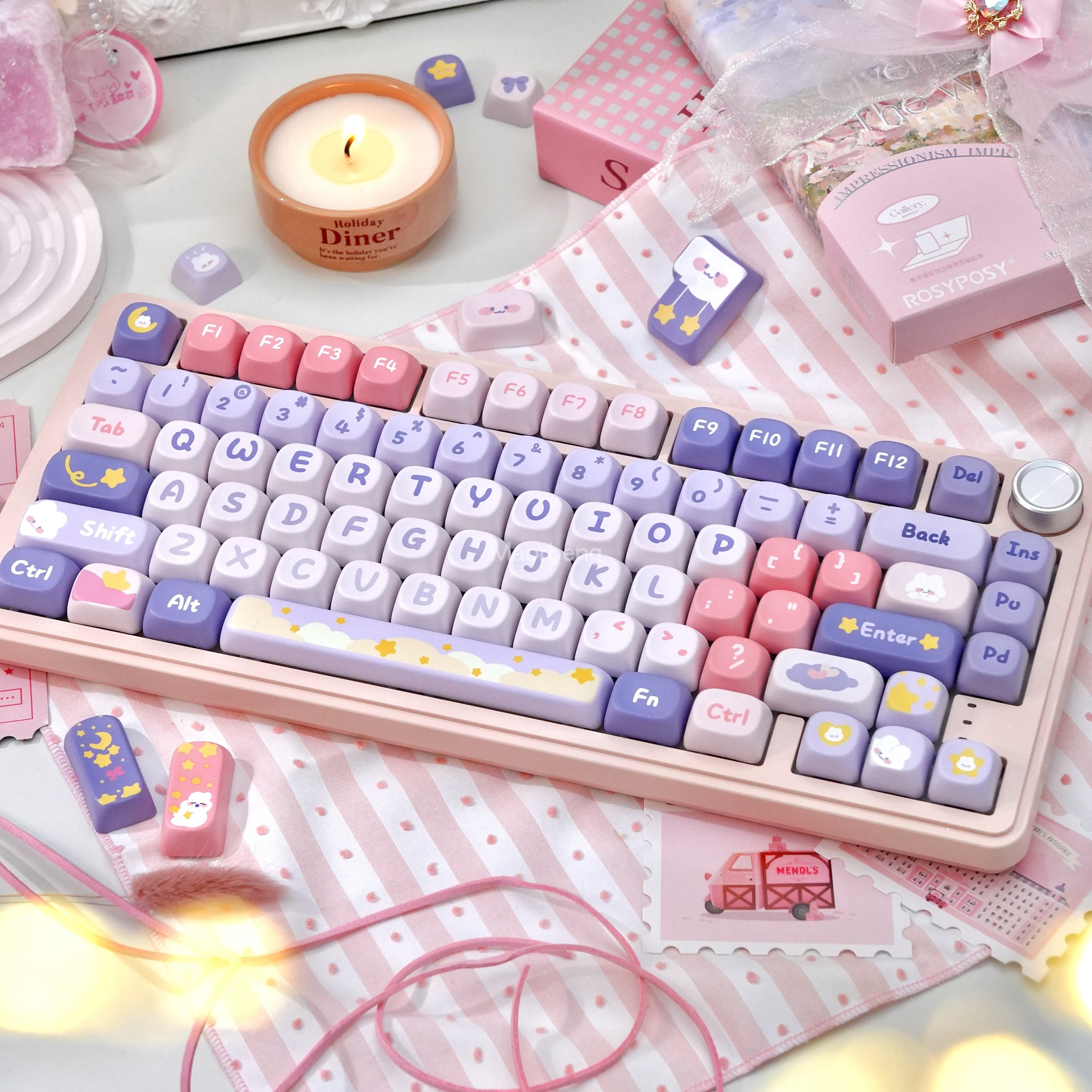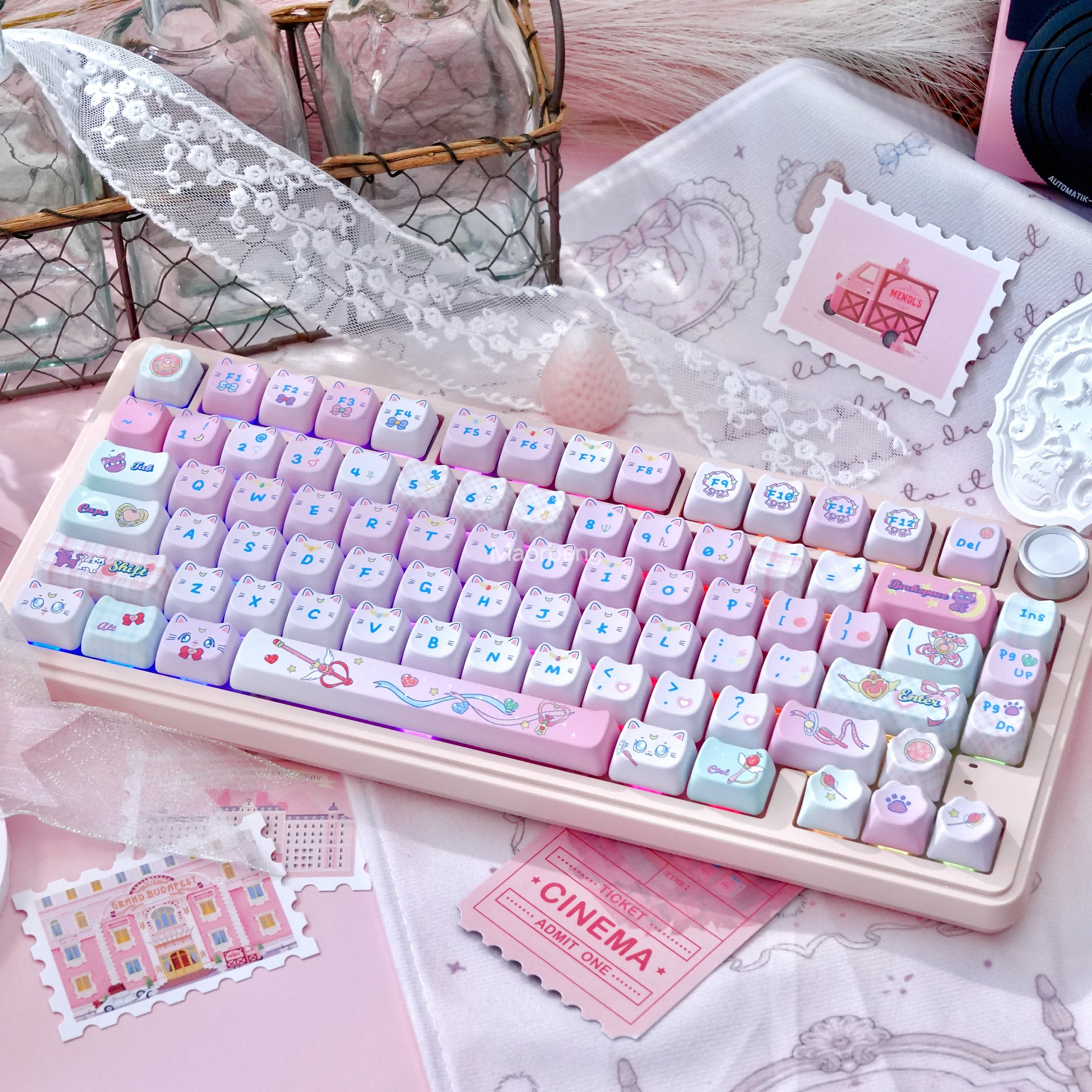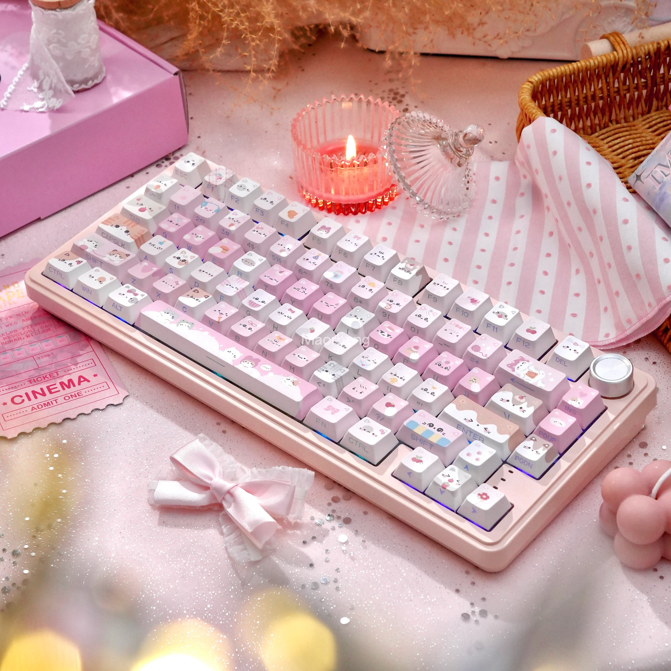 猫尔本粉色可爱女生81键带旋钮调节三模无线机械键盘8000毫安M75