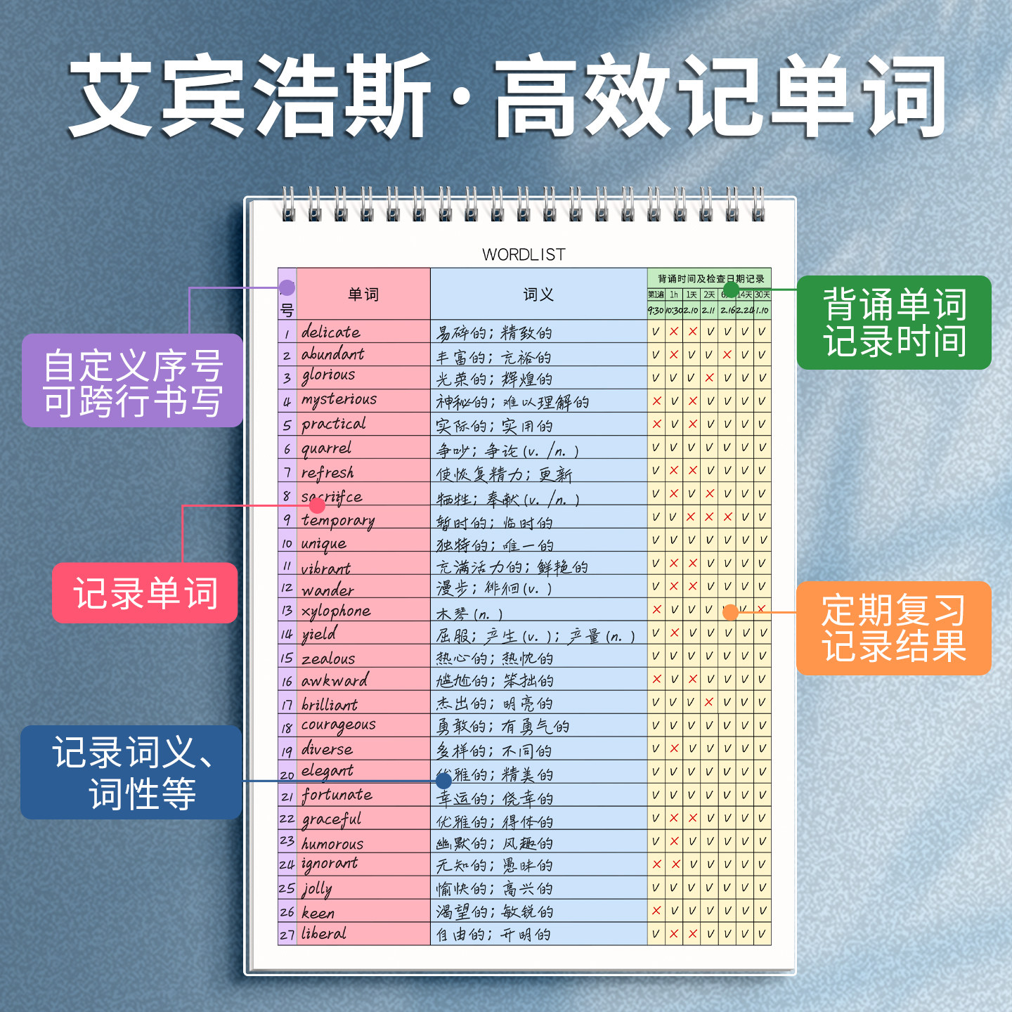 英语单词本记忆艾宾浩斯记忆曲线大学生考研默写纸神器单词生词笔记本子四级六级日语专升本词汇初中高中遗忘
