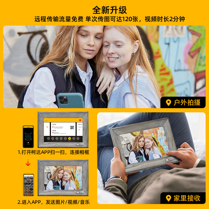 KODAK柯达智能云电子相册高清数码相框手机远程传输亲友节日礼物闺蜜婚礼相片横竖摆放挂墙送礼LOGO批量定制