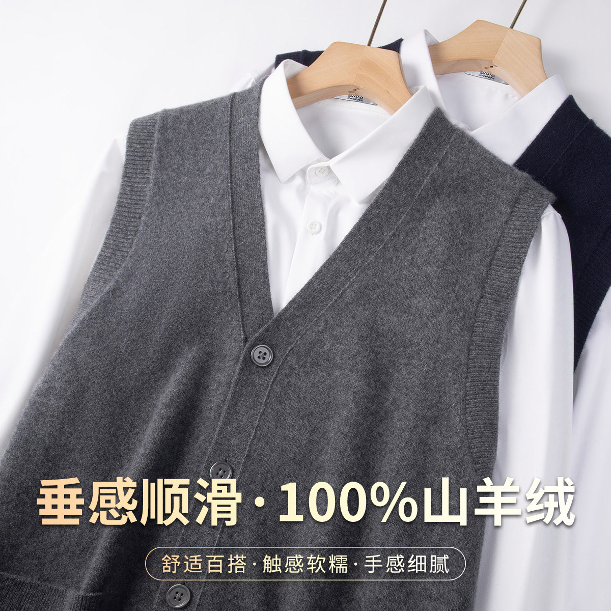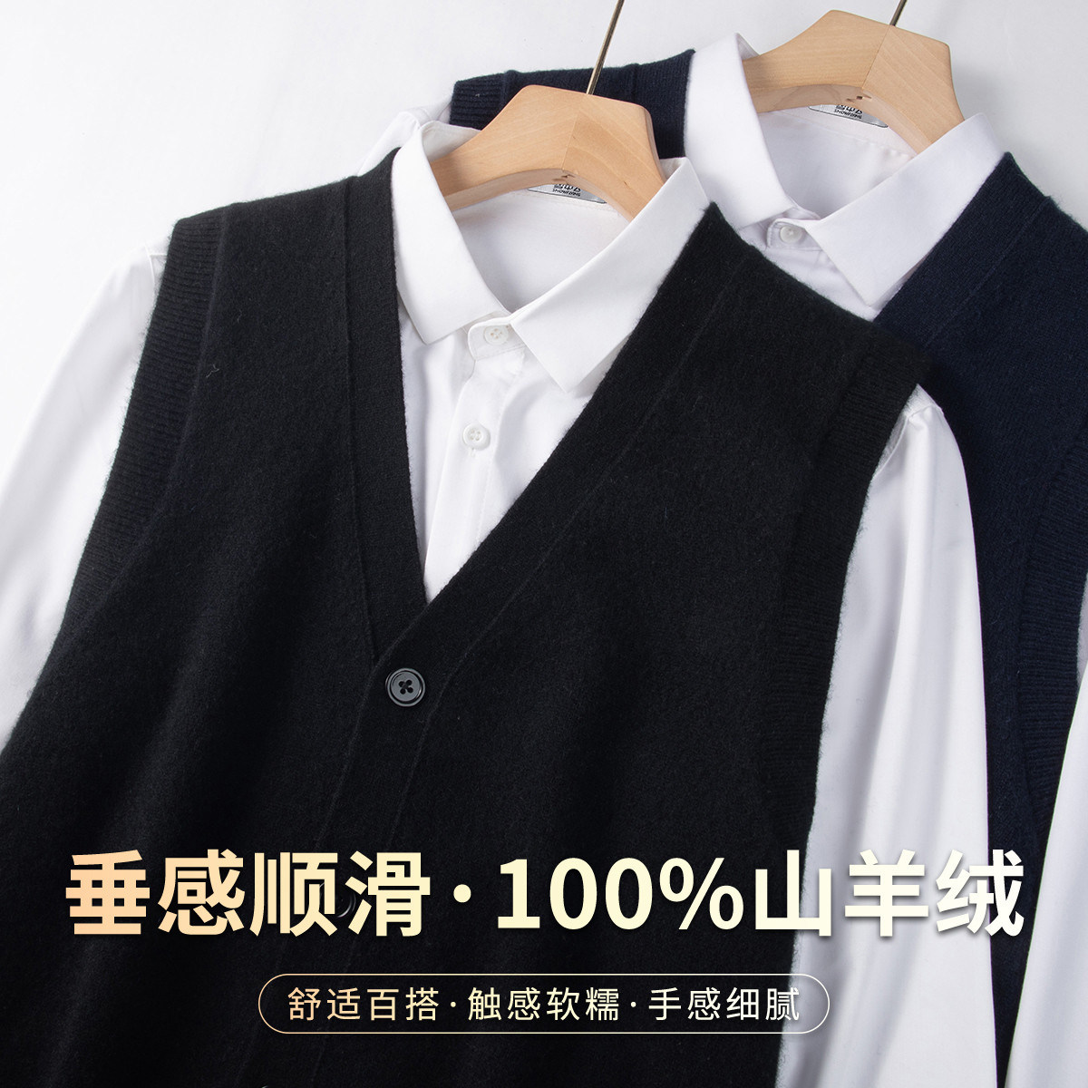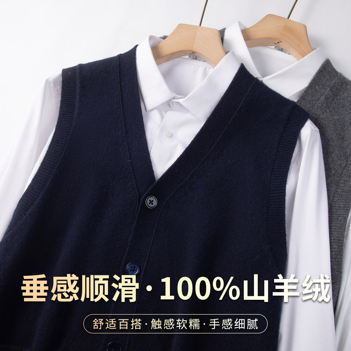 雪中飞【100%山羊绒】轻奢老钱风男士马甲简约百搭叠穿羊绒衫W