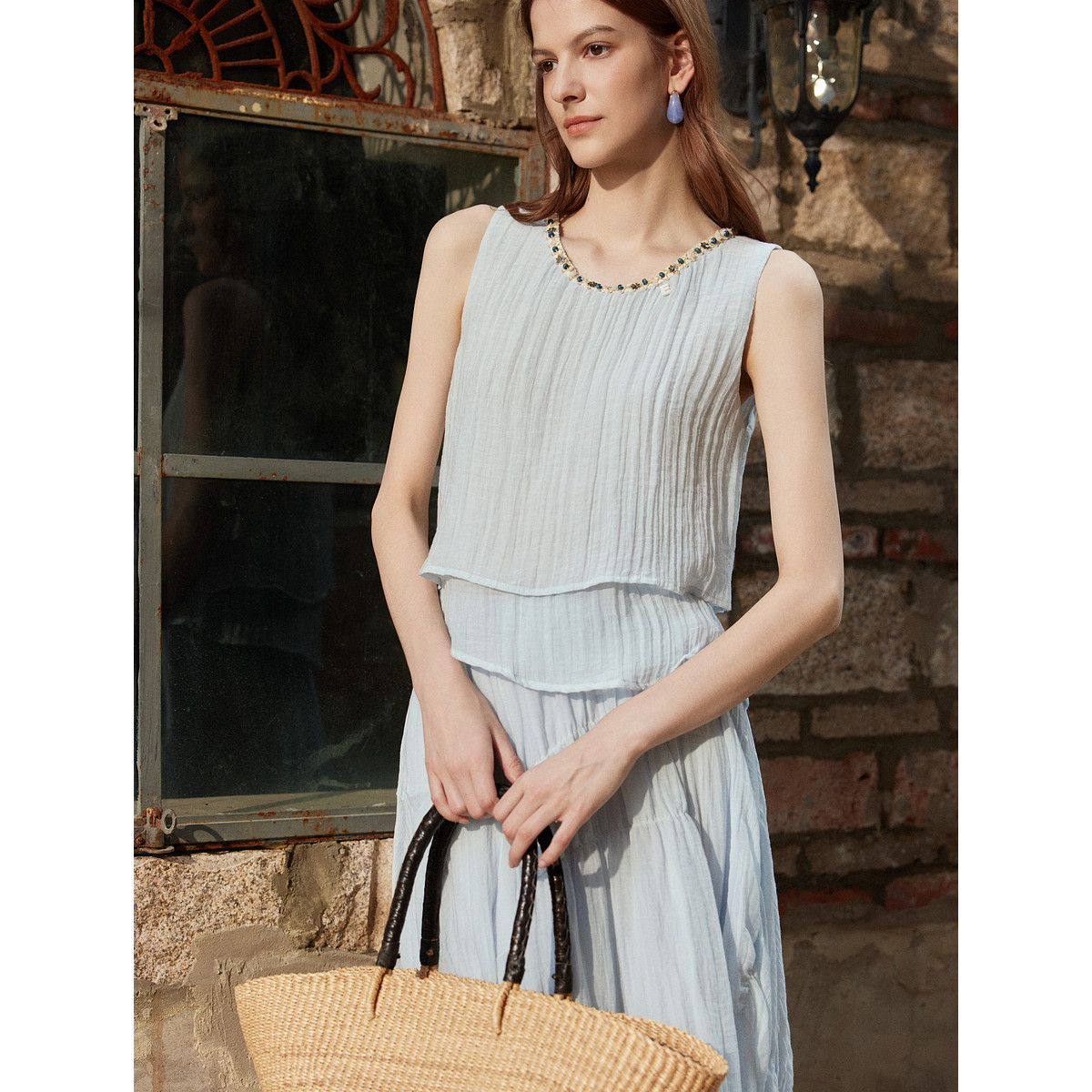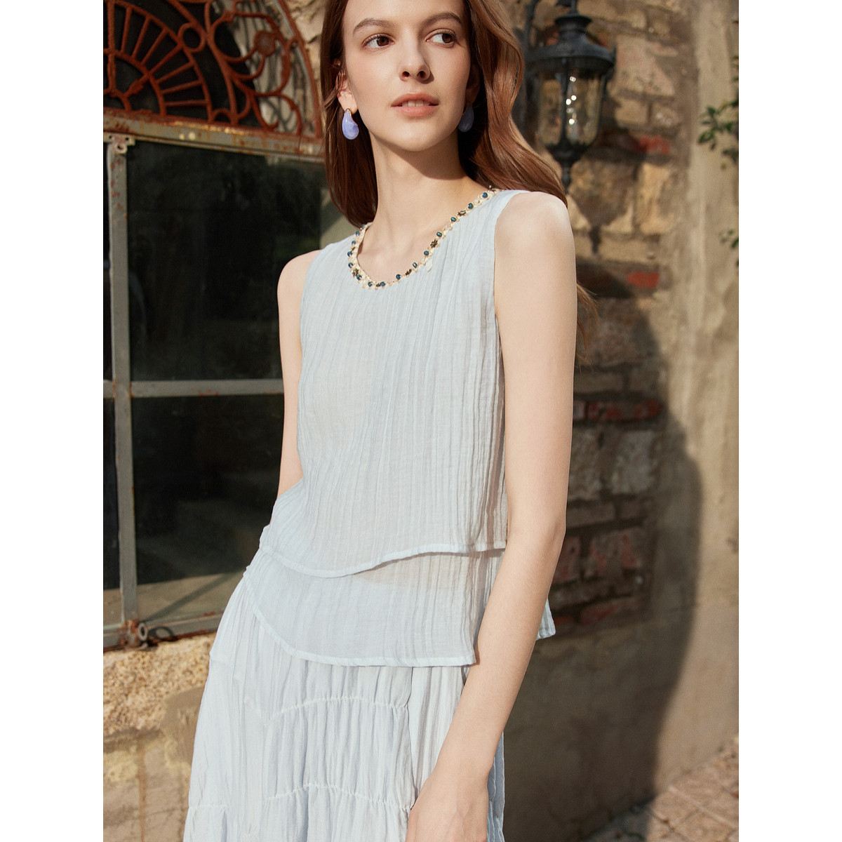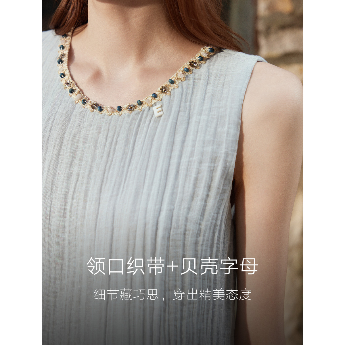 【西西里岛】ELLE波西米亚背心小衫女2025夏季新款亚麻肌理感衬衫