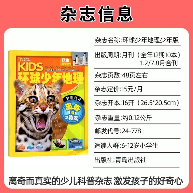 kids环球少年地理少年版2025年12月【送礼品2026全年/半年订阅】美国国家地理少儿版动物世界少儿科普探索课外兴趣阅读期刊