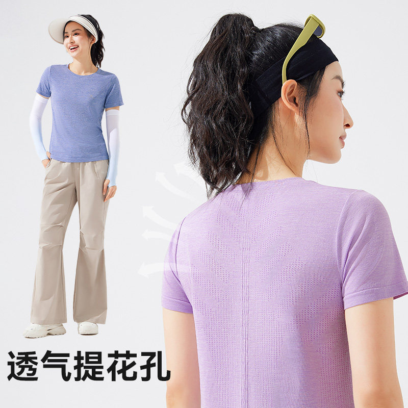 拓路者无缝一体织瑜伽服短袖女2025夏季圆领高弹透气运动跑步上衣