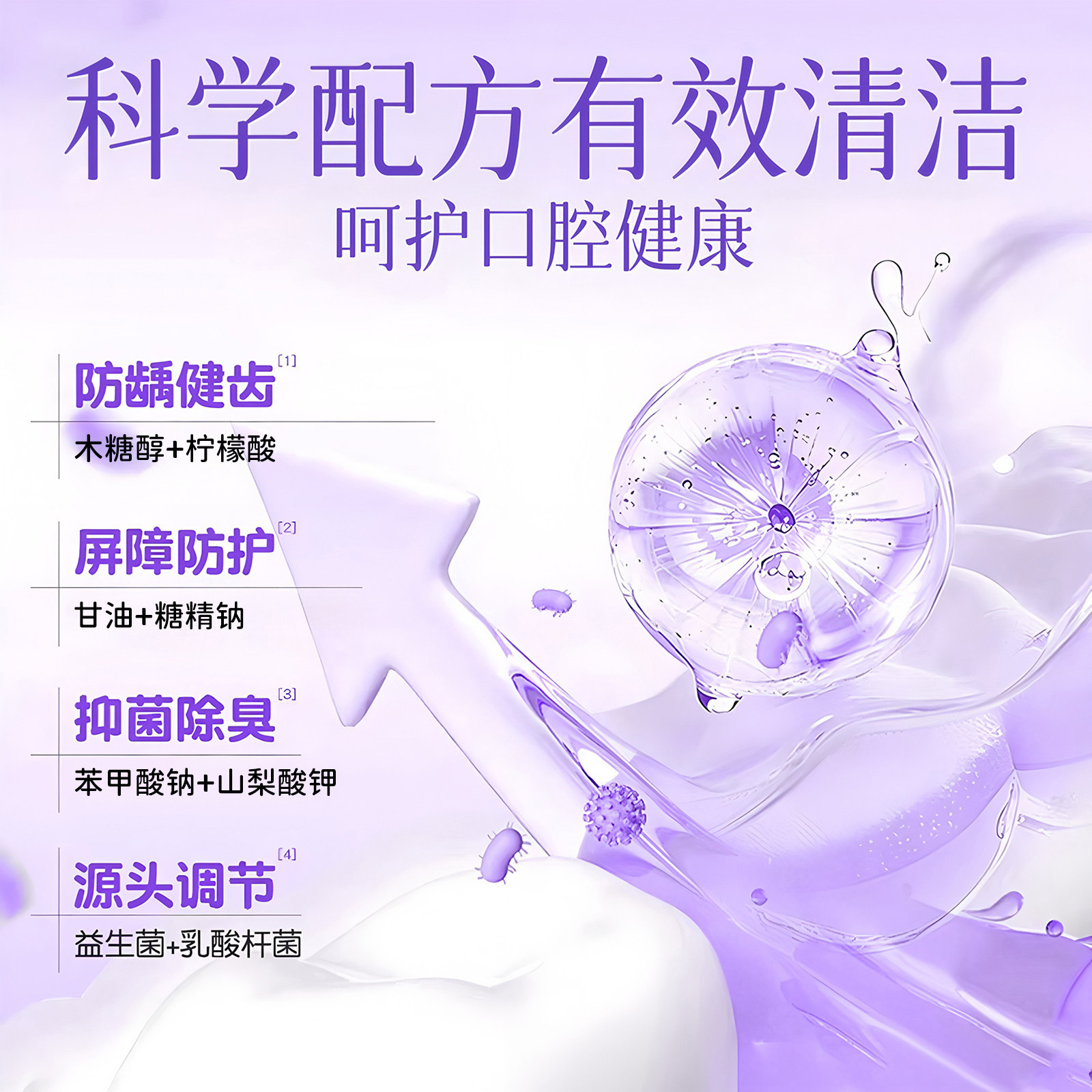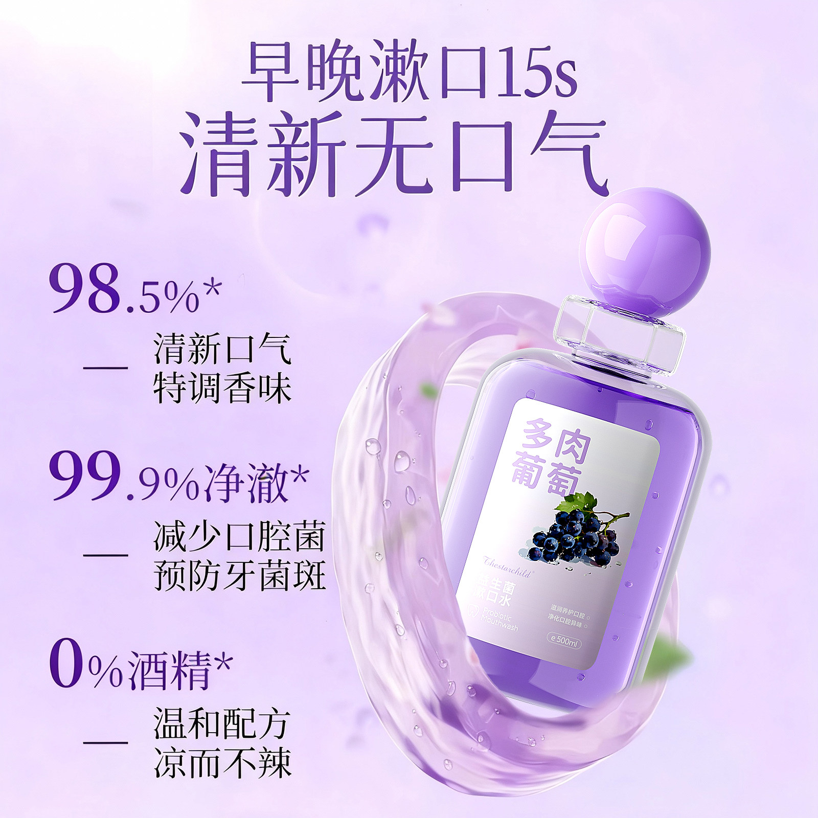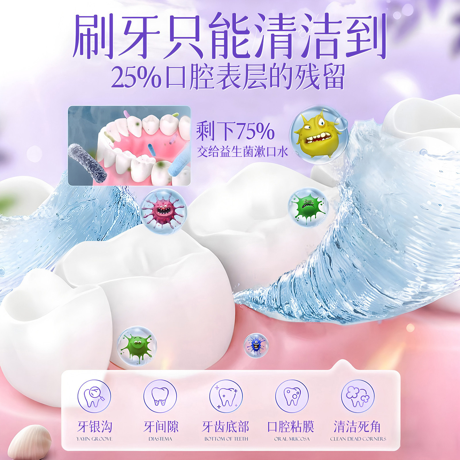 【张杰同款】白惜抗漱口水补充装益生菌持久留香护龈防蛀便携清新