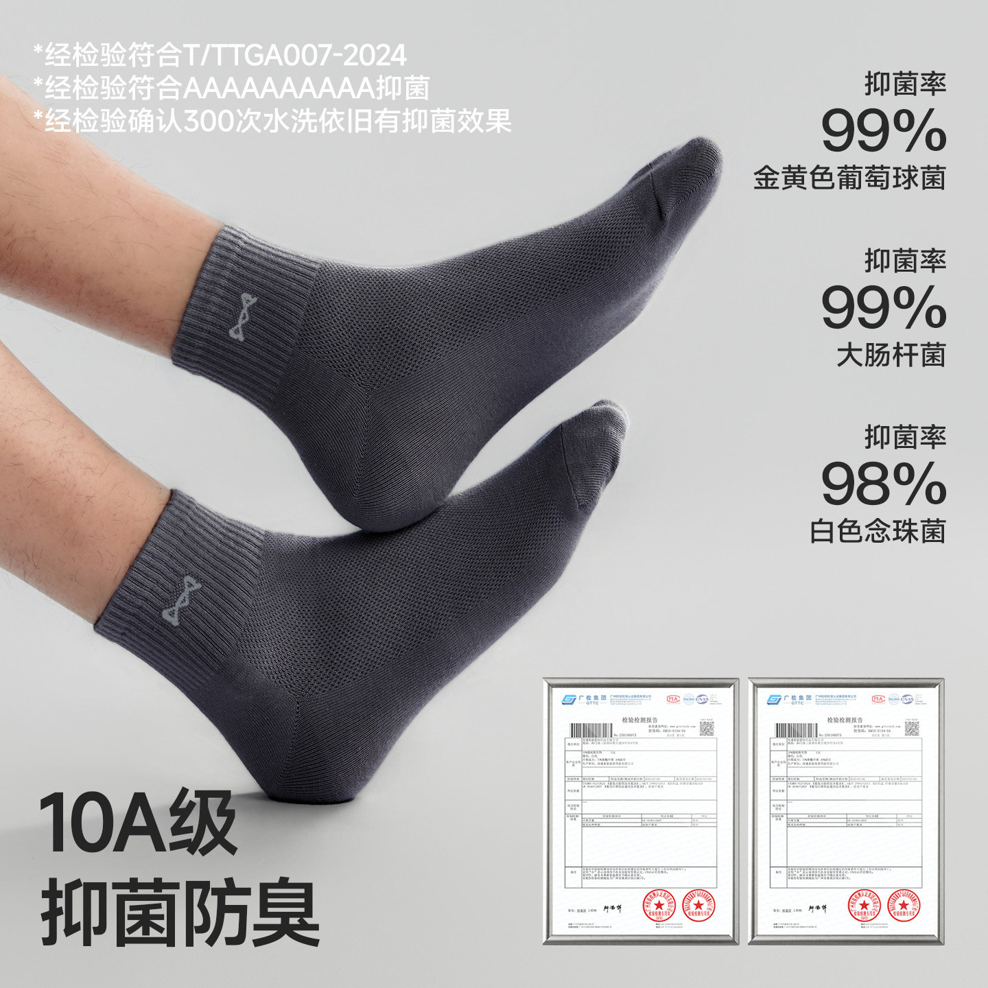 10A抗菌|蕉内银皮301S袜子男中筒袜吸汗防臭运动短袜秋冬长袜棉袜