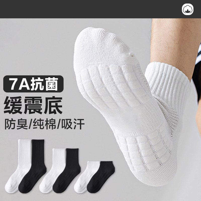 男士袜子跑步袜女士运动男毛巾底纯棉袜防臭羽毛球长筒中筒抗菌袜