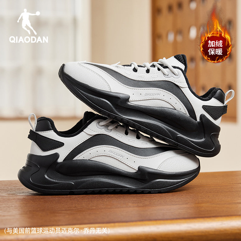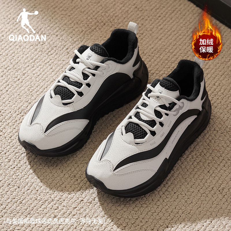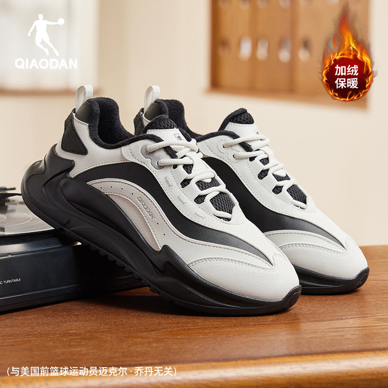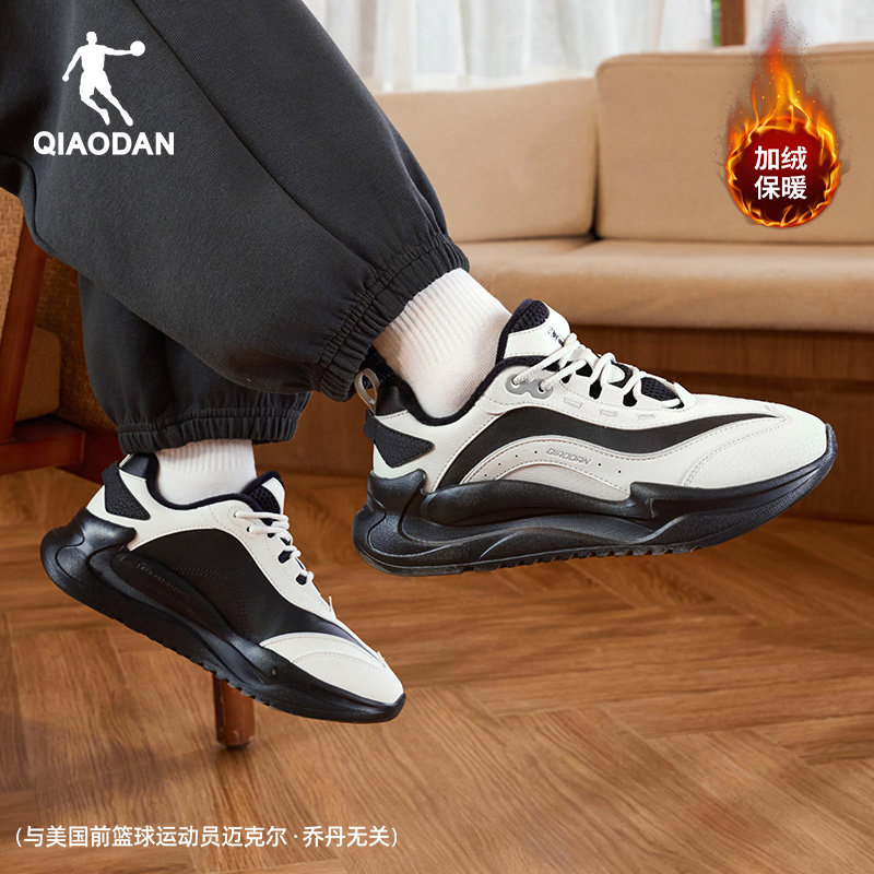 乔丹皮面加绒保暖棉鞋女休闲鞋2025冬季百搭黑白厚底老爹鞋运动鞋