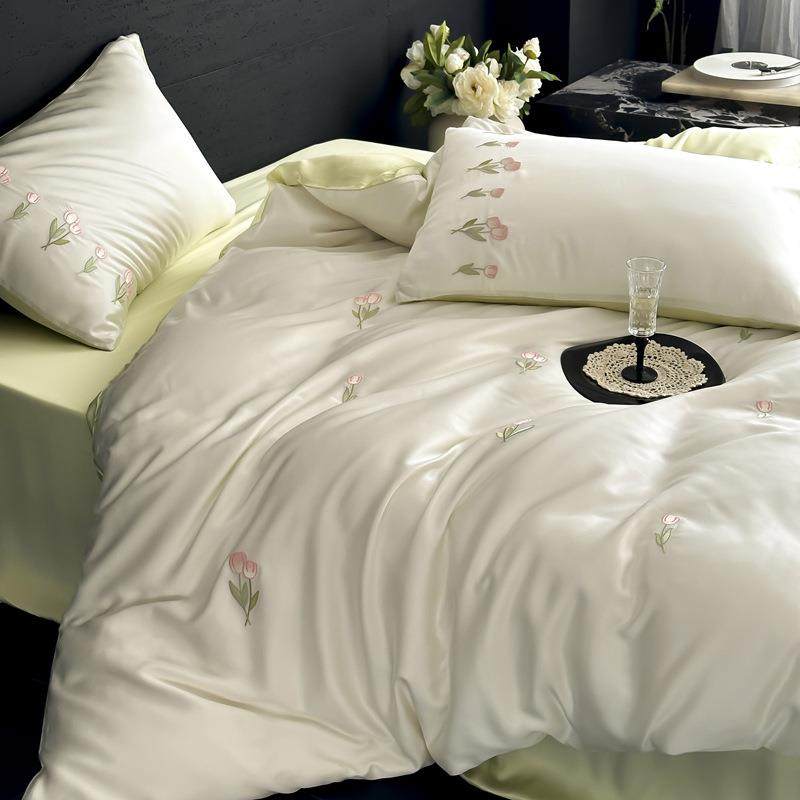 夏天小清新60支兰精天丝四件套夏季刺绣冰丝凉感莱赛尔纤维床品