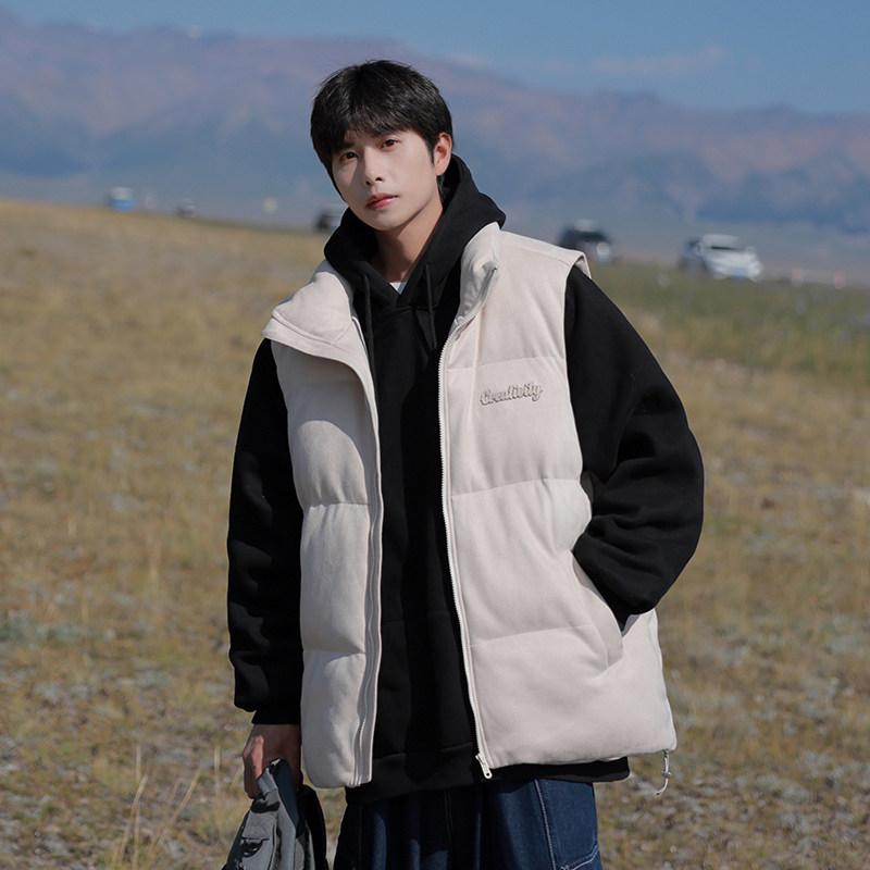 【敖瑞鹏同款】捷尼拉莫立领马甲男士冬季大码宽松保暖白色坎肩男