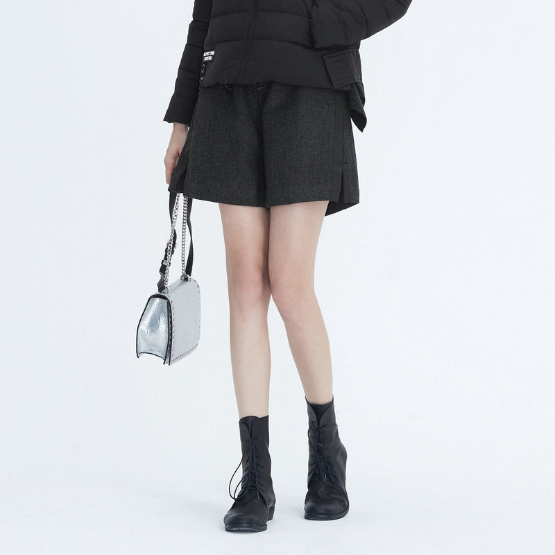 sdeer圣迪奥A字短裤女复古条纹松紧开衩短裤女款 外穿S20480903