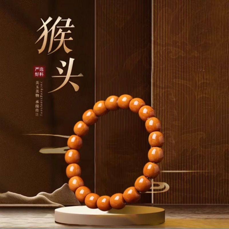 猴头手串野生百香串文玩鲨鱼鳍男女盘玩手链手持聚宝盆小核桃原皮