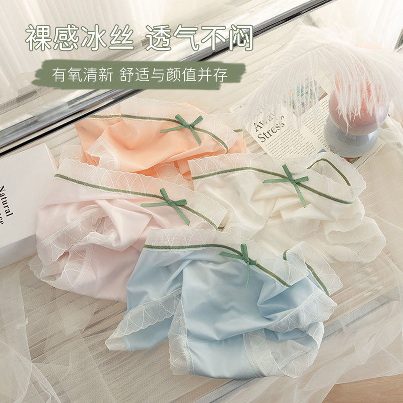 都市丽人冰丝无痕内裤女春夏季蕾丝花边抗菌纯棉裆薄款面膜三角裤