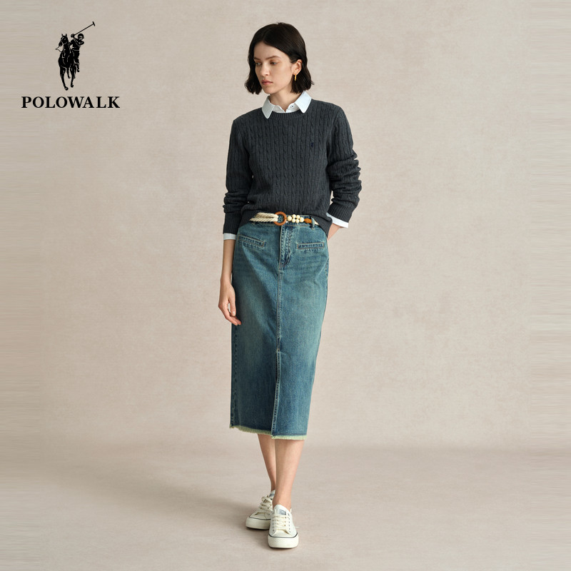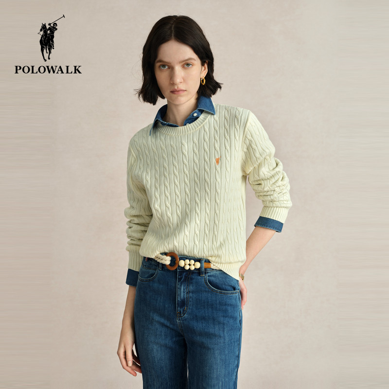POLOWALK女士毛衣2025秋冬新款针织衫上衣女新年红绞花套头毛衫
