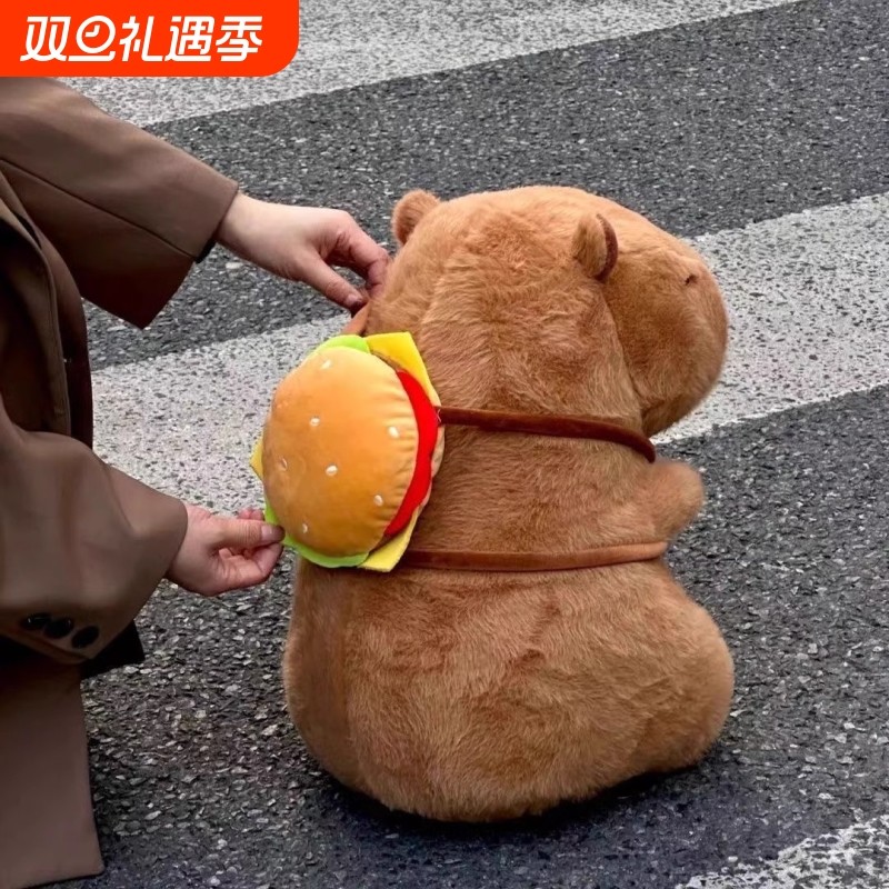 汉堡包背包卡皮巴拉公仔水豚鼠玩偶土拨鼠情人节生日礼物儿童玩具
