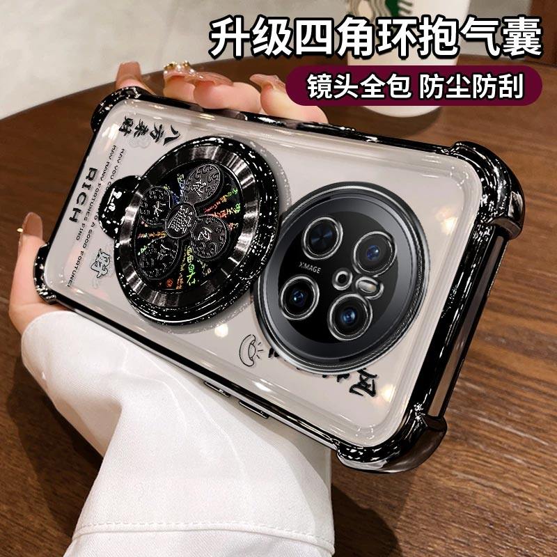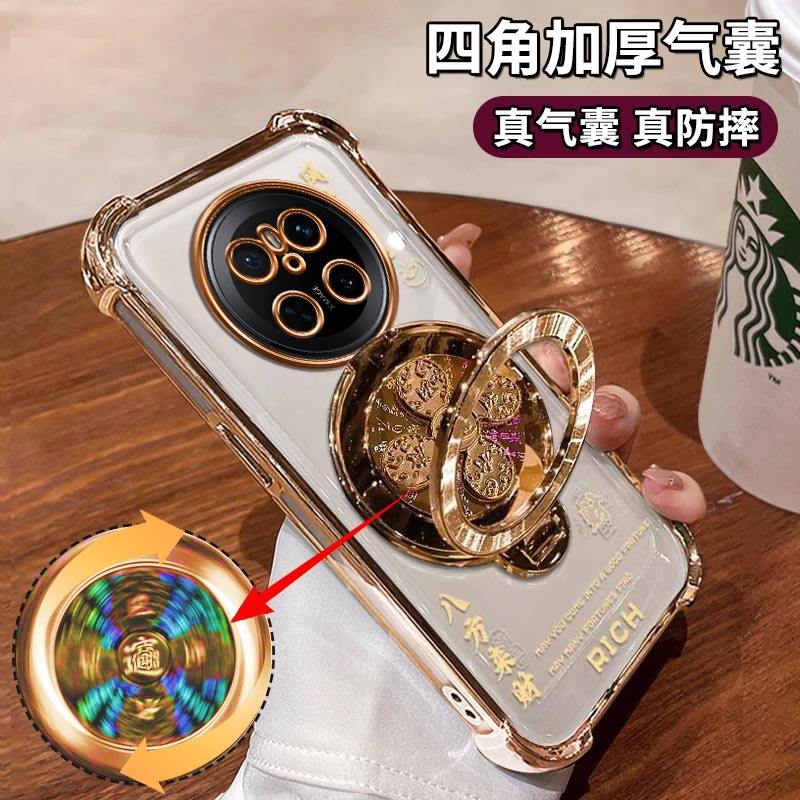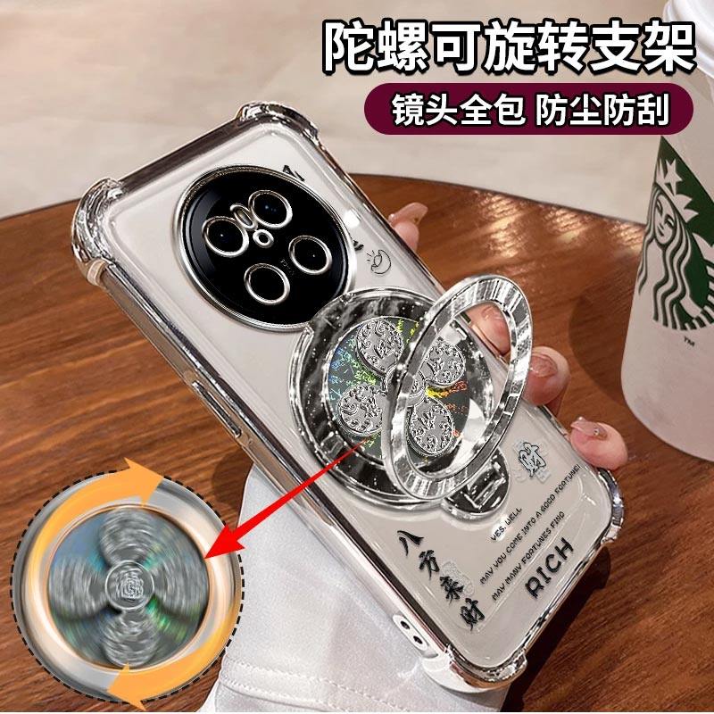 适用华为mate70手机壳风生水起电镀四角防摔高级感简约气囊MATE70PRO解压陀螺支架新款保护套