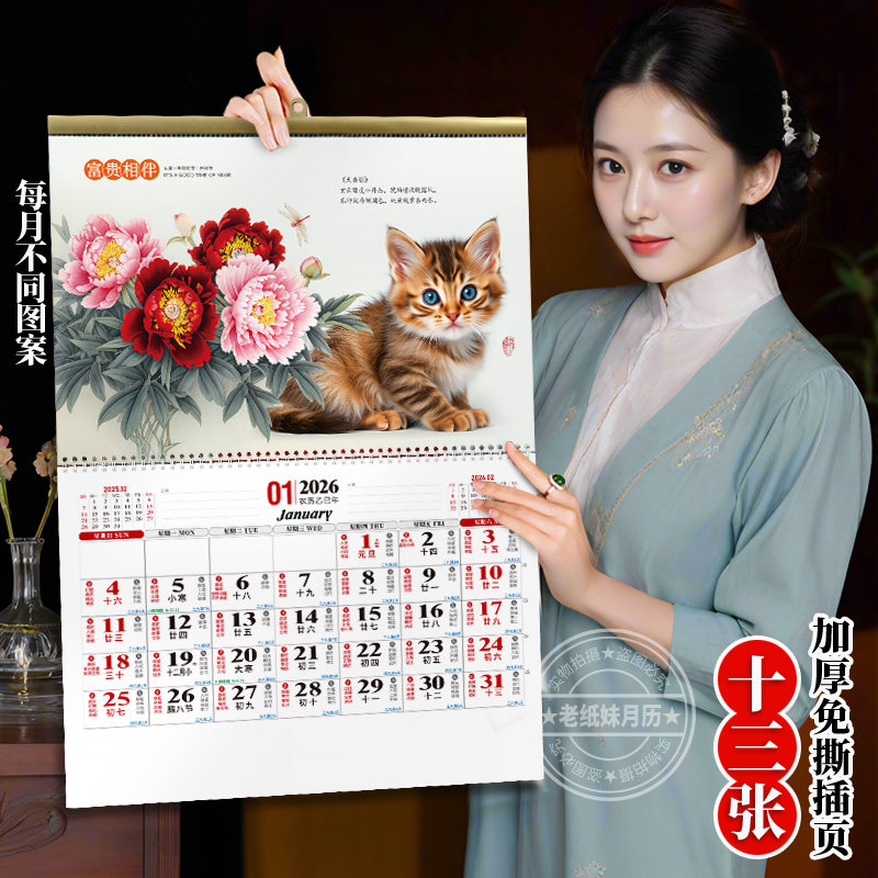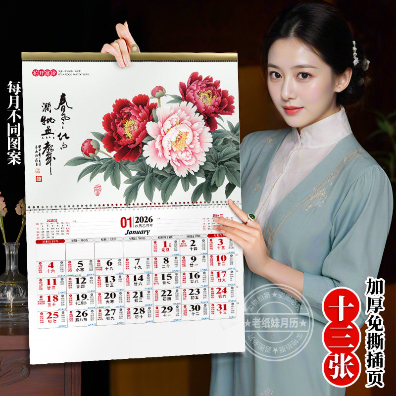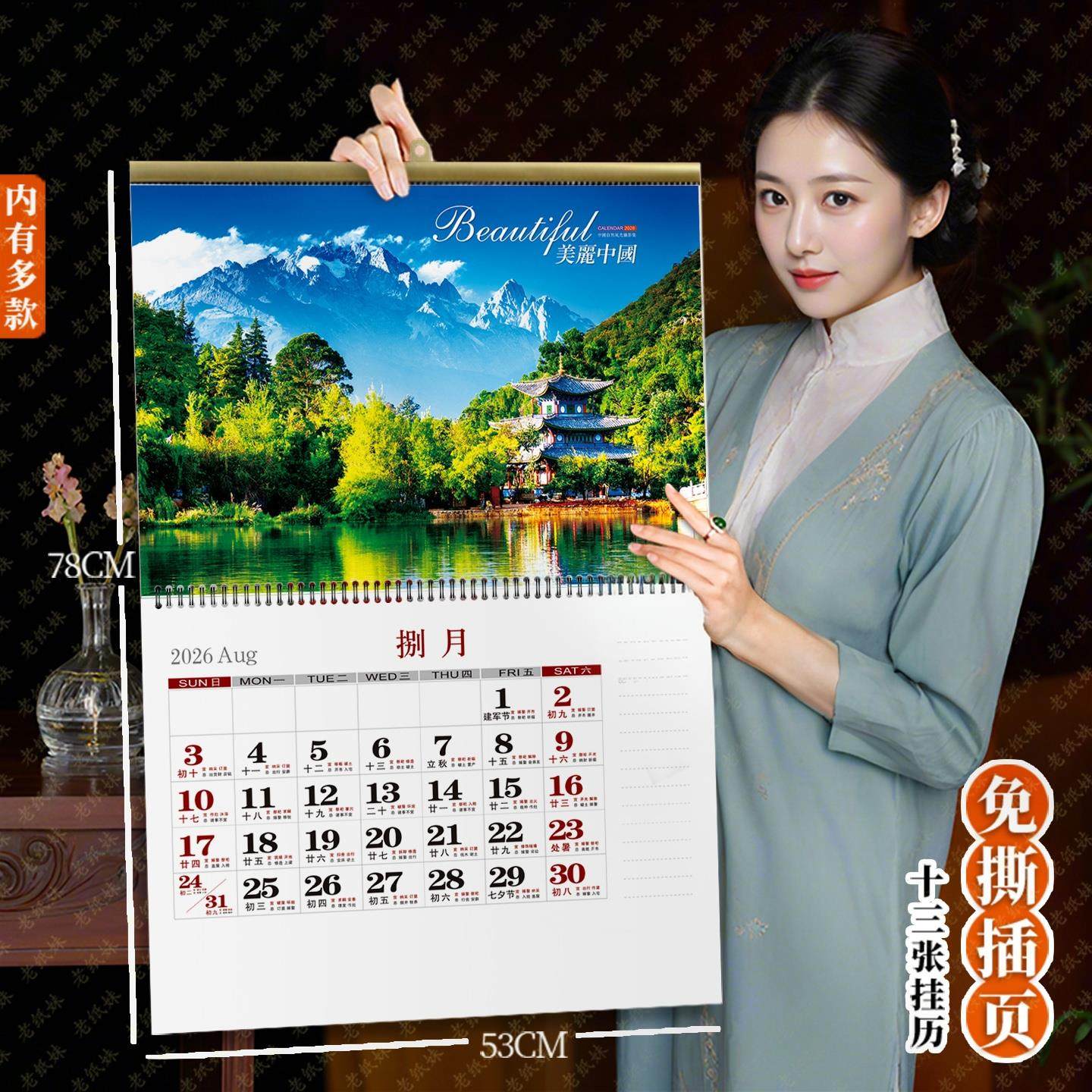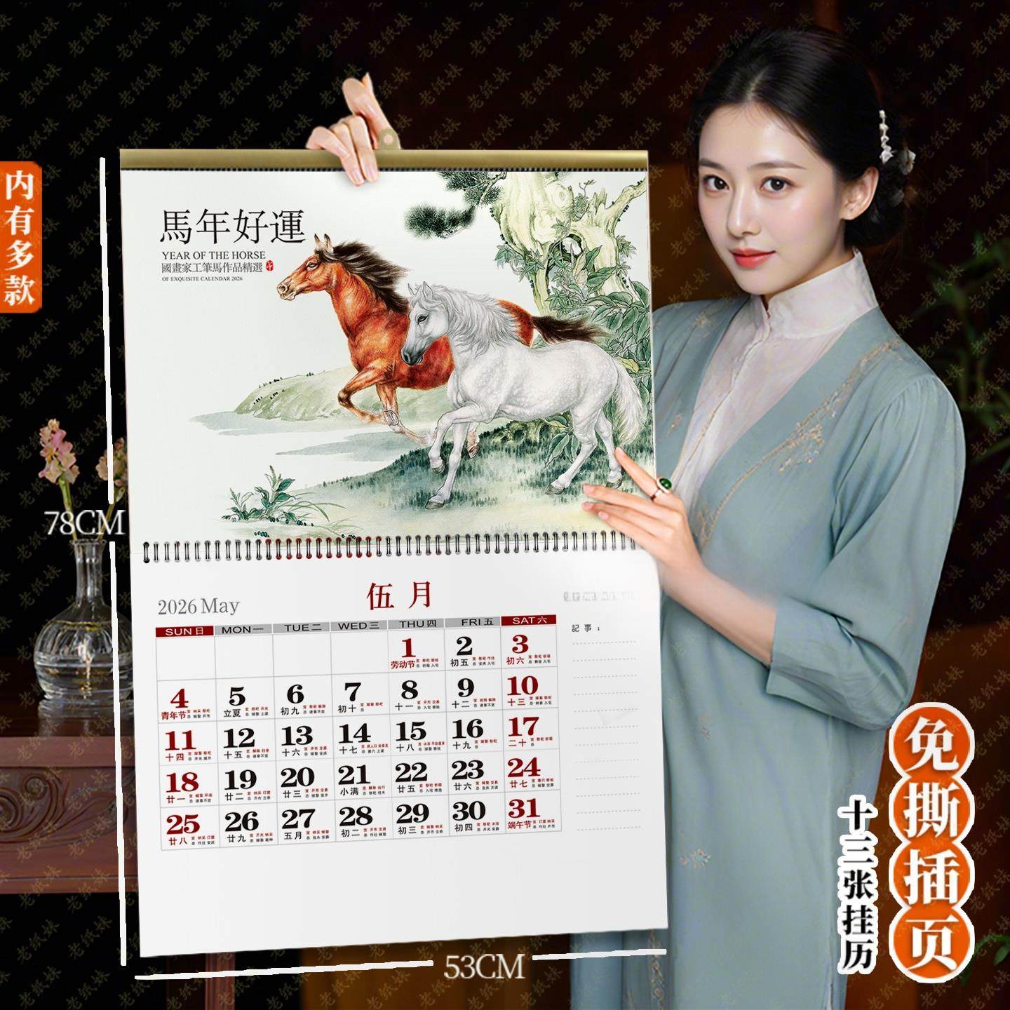 2026年新款大号13张免撕挂历马到成功挂墙式家用中国风马年月历记事备忘本高档日历